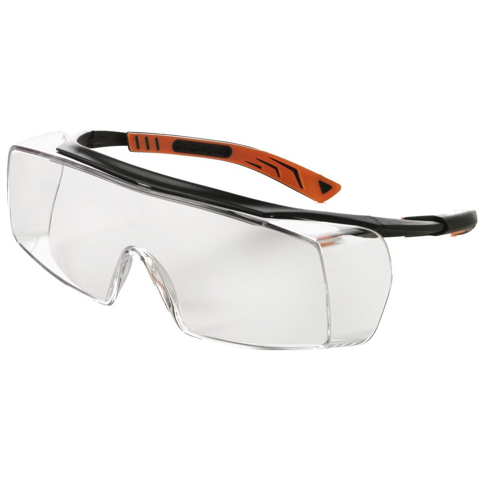 *5X7* ÜBERBRILLE FÜR KORREKTIONSBRILLENTRÄGER EN 166, EN 170, KLAR 41956 Schutzbrille 5X7 Bestell-Nr. 41 956 Norm EN 166, EN 170 Gewicht ca. 37 g Material Rahmen/Bügel: Polycarbonat Sichtscheibe klar, kratzfest beschichtet • Überbrille für Korrektionsbrillenträger • keine Überlappung der Bügel für absoluten Tragekomfort • SoftPad™ Technologie • Anti-Kratz PLUS Beschichtung • Длинаnverstellbare Bügel • Korrektionsbrillen alleine garantieren keine ausreichende Schutzwirkung in gefährdeten Bereichen. Personen mit Sehfehlern können Arbeiten ohne Unterstützung von Korrektionsgläsern nicht sicher ausführen. Das Modell 5X7 ist eine Überbrille, die zusammen mit der eigenen Korrektionsbrille, maximalen Schutz und Komfort bietet