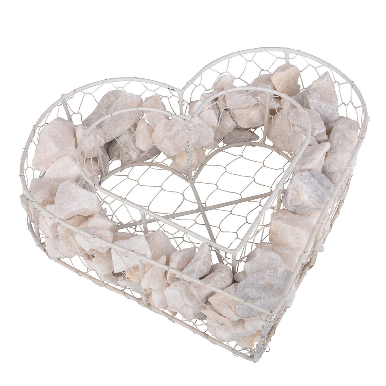 Das Herzgitter hat im Rand kleine grau-weiße Steine und einen freie Lücke in der Mitte zum bepflanzen. Durch die einfachen Farben können Sie jegliche Bepflanzungen für das Herz nutzen.