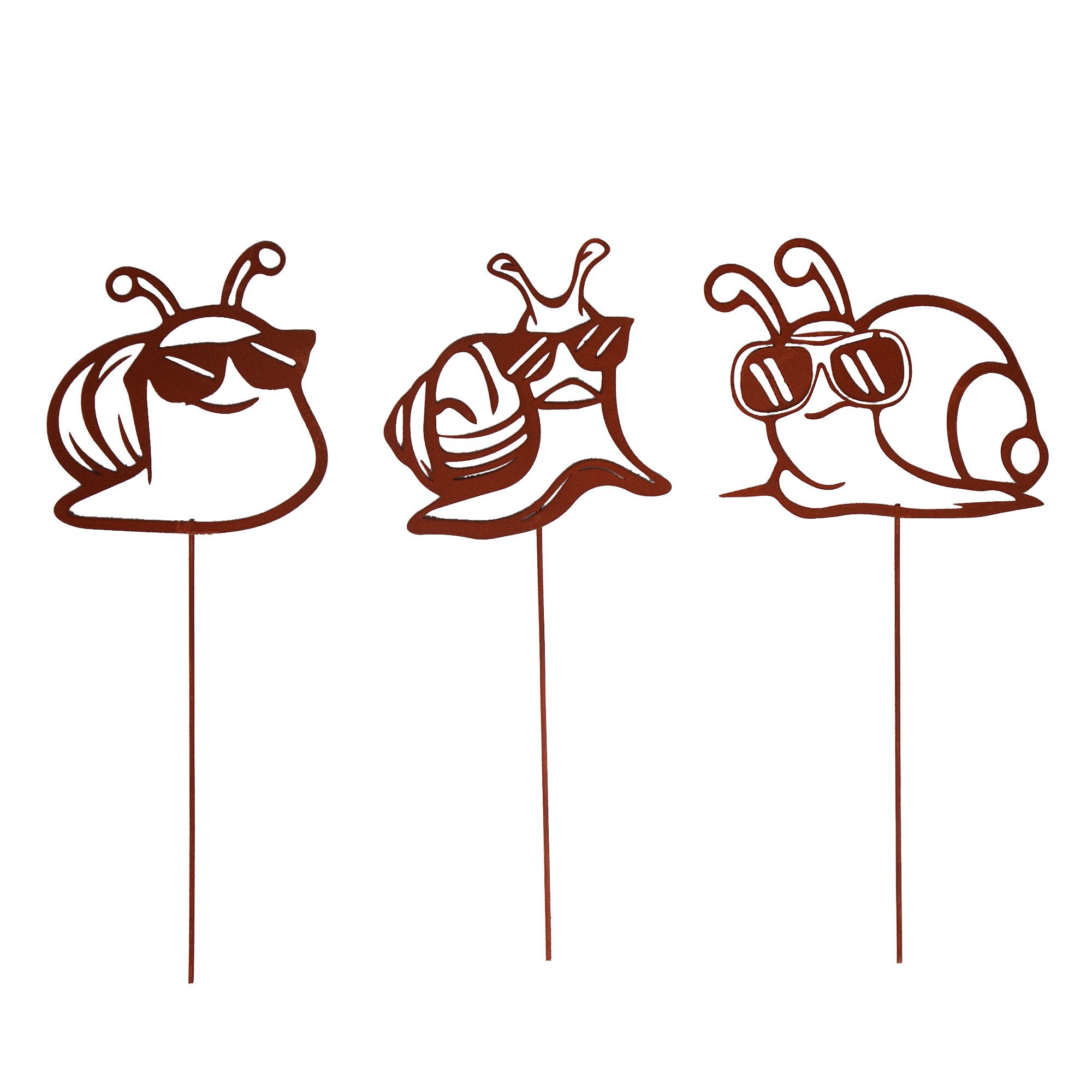 Gartenstecker Schnecken aus Metall in Rostoptik
