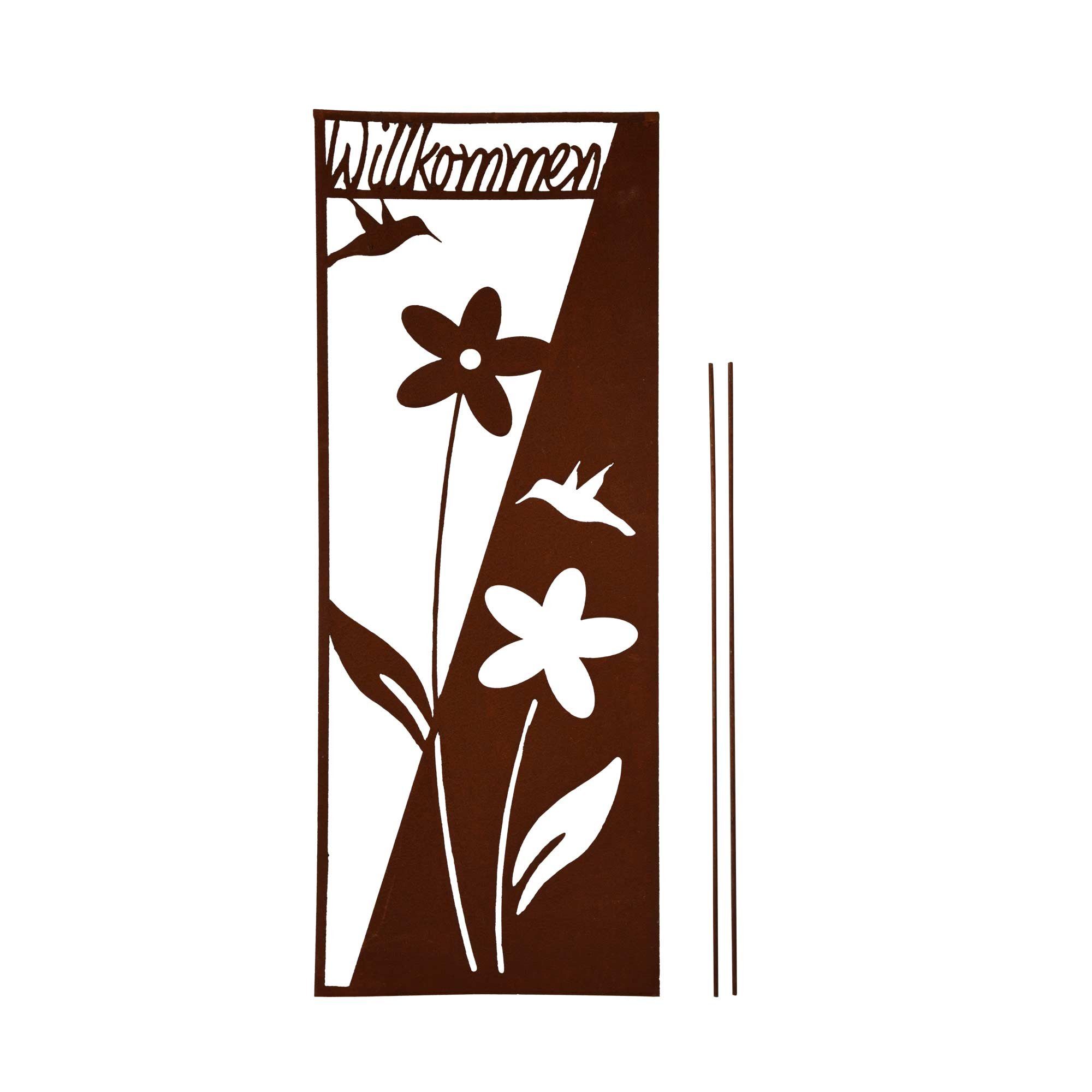 Der Sommer steht vor der Tür und die warmen Tage im Garten können kommen! Machen Sie Ihren Garten mit unserem Gartenstecker aus Edelrost noch schöner. Das wunderschöne Schild lässt sich in fast jeder Umgebung integrieren. Die kunstvoll gezeichneten, feinen Formen bringen das gewisse Etwas in Ihren Garten. Die Handhabung des Steckers ist kinderleicht. Einfach mit den Stäben in die Erde drücken und schon ist Ihr Garten dekoriert.