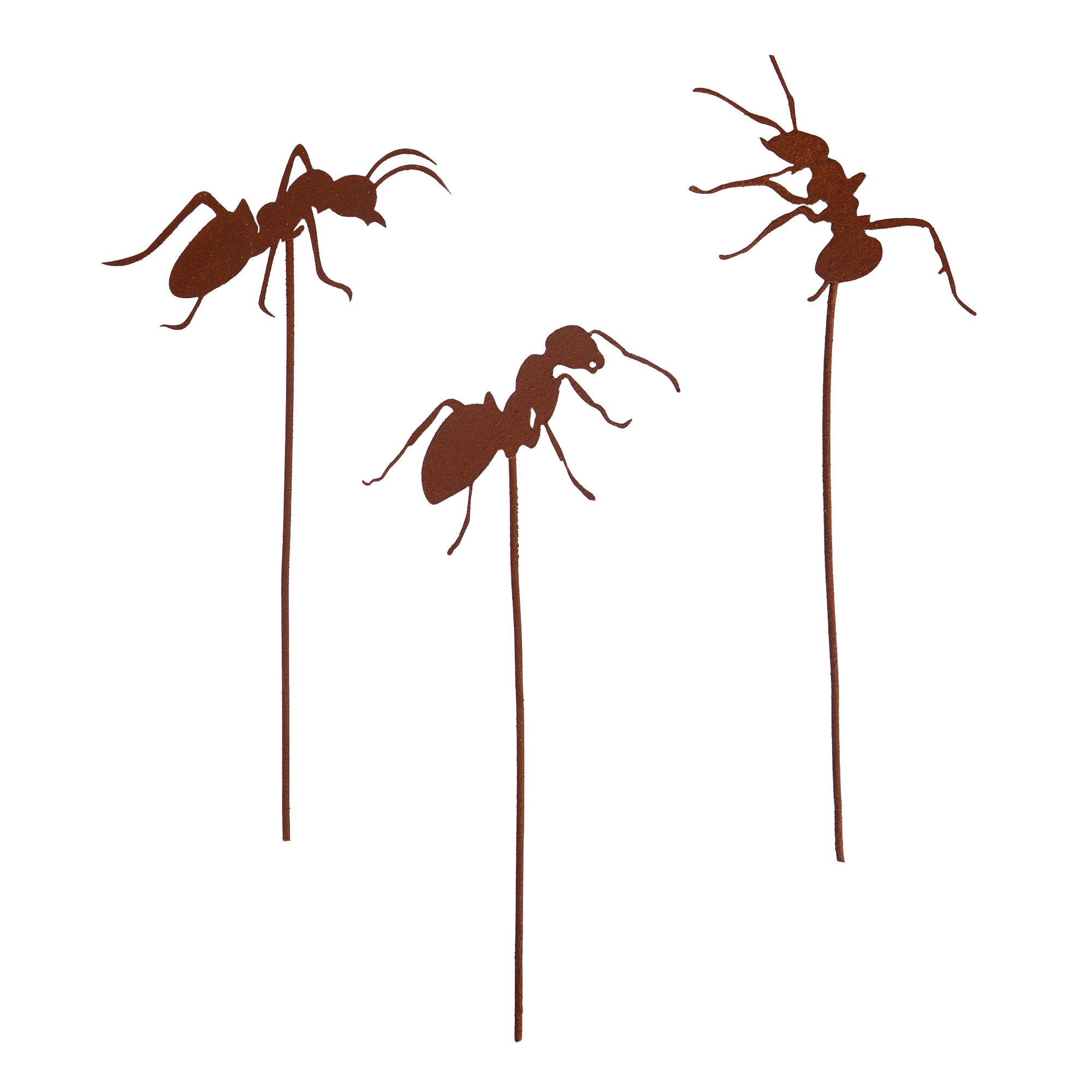 UNUS Garden Ameisen Gartenstecker 5er Set, Gartendeko Rostoptik, Roststecker aus Edelrost Metall, Rost Deko für Garten Terrasse Balkon Blumentopf