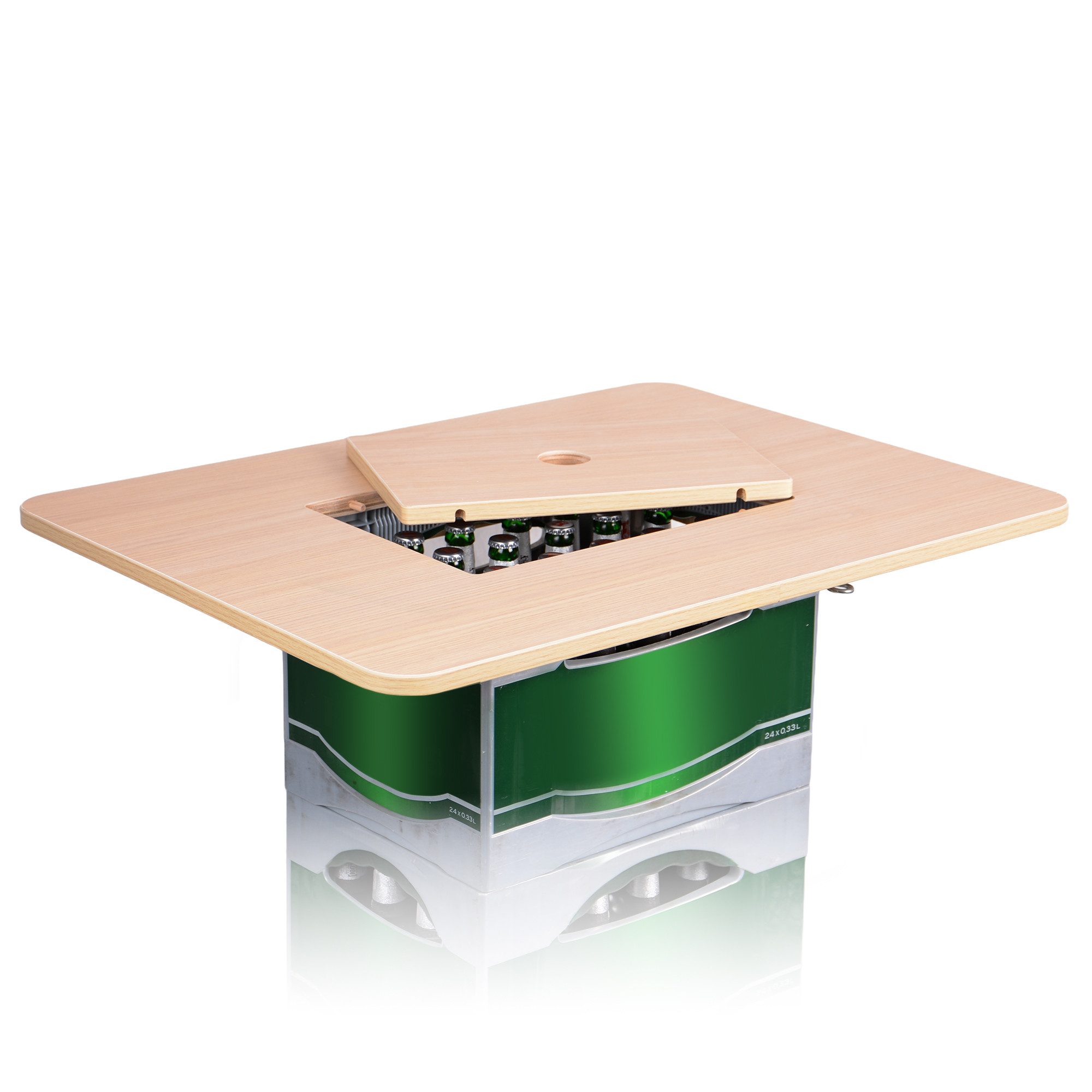 Der Bierkastenaufsatz verwandelt Ihre herkömmlichen Bierkisten in einen praktischen und vielseitigen Bierkastentisch bzw. Stehtisch mit einer zusätzlichen Einlageplatte. Damit schützen Sie Ihre Getränke vor direkter Sonneneinstrahlung und vergrößern gleichzeitig die Tischfläche für mehr Komfort und Bequemlichkeit.