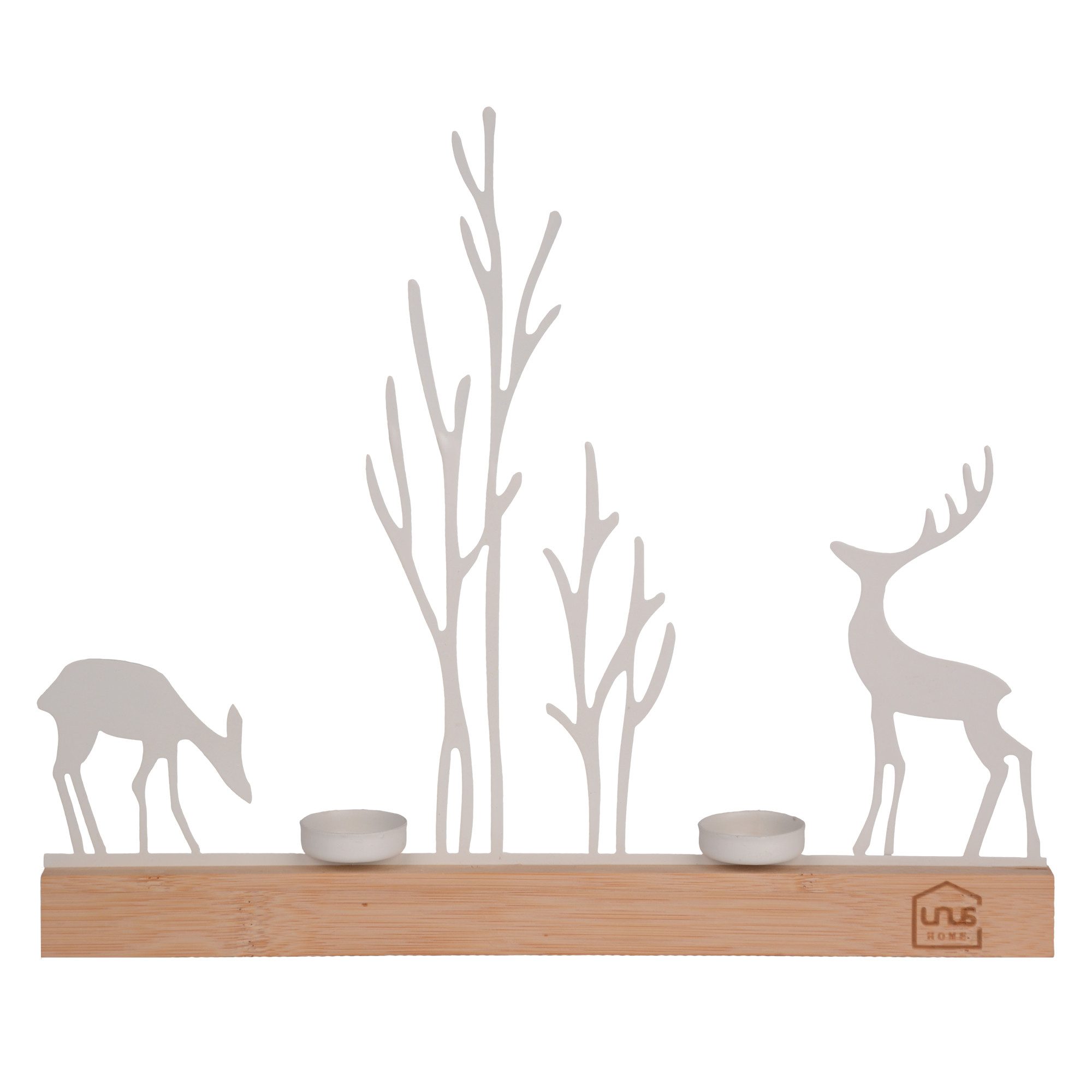 Bringen Sie winterliche Eleganz in Ihr Zuhause mit diesem stilvollen Hirsch-Aufsteller. Die filigranen Hirsche aus weißem Metall stehen auf einem hochwertigen Bambusfuß und verbinden modernes Design mit natürlichen Materialien. Ein wahrer Hingucker, der Ihre Weihnachtsdekoration harmonisch ergänzt.