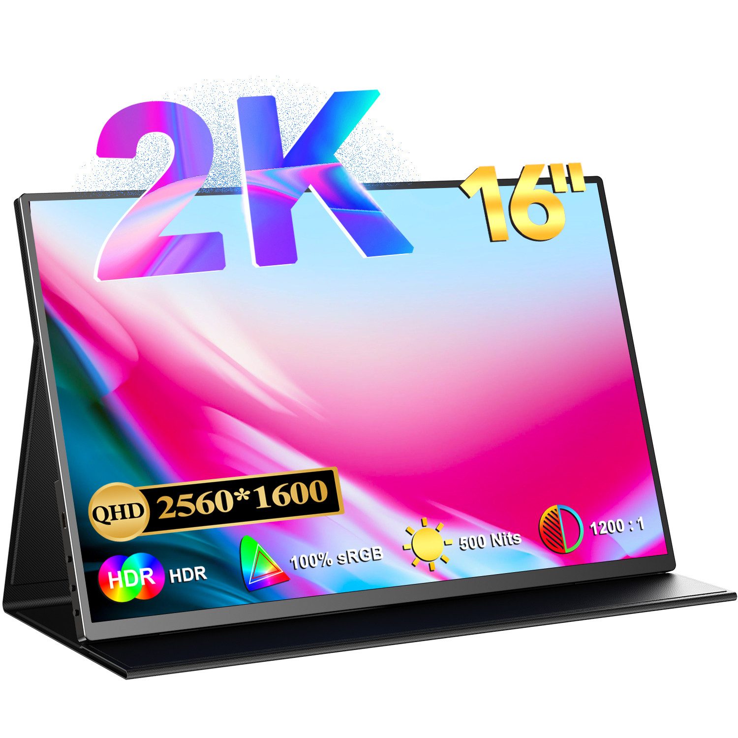 Dieser tragbare 16-Zoll-Monitor besticht durch eine 2K-Auflösung von 2560 x 1600 Pixeln, die für klare und detailreiche Bilder sorgt und eine höhere Pixeldichte als herkömmliche Full-HD-Monitore bietet.