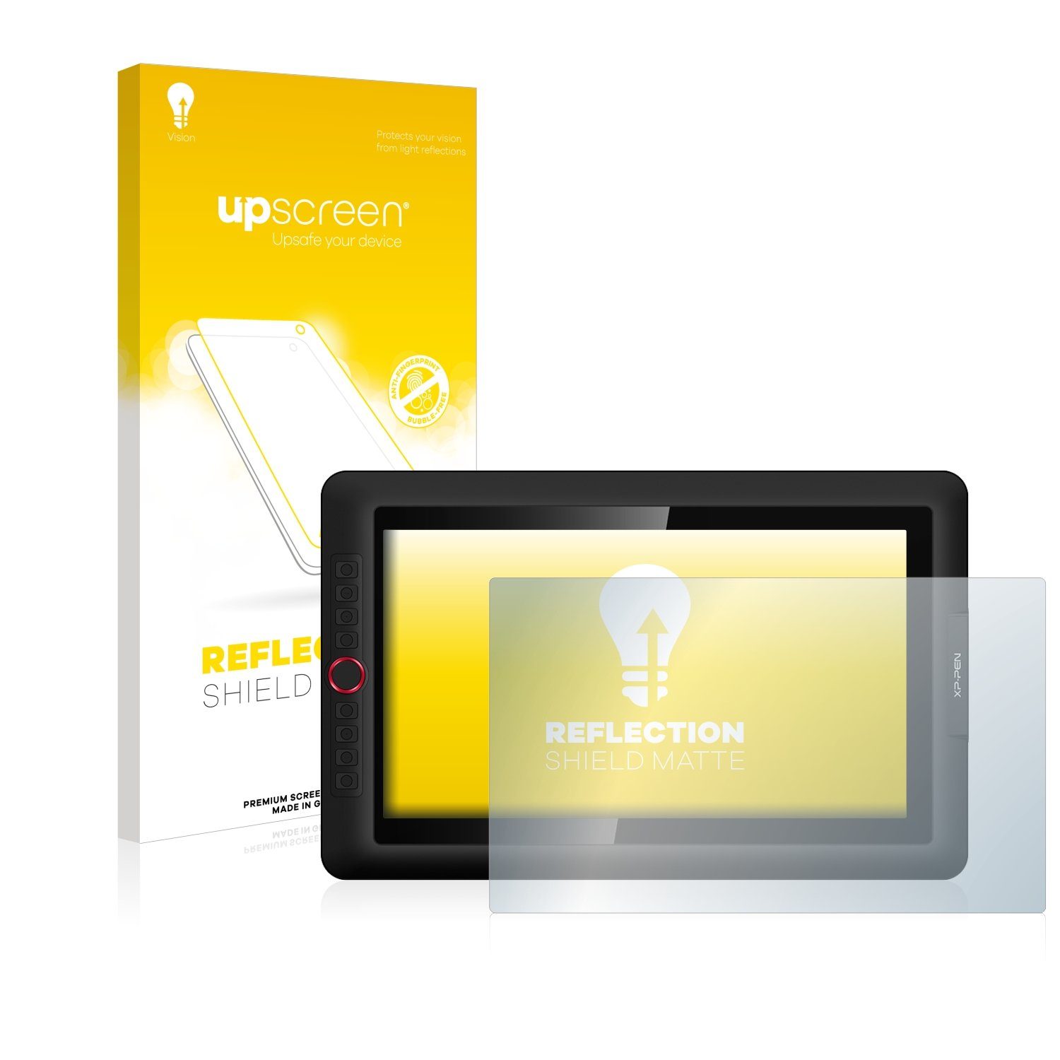 upscreen Reflection Shield Matte Premium Displayschutzfolie für XP-Pen Artist 15.6 Pro reduziert Reflexionen auf Ihrem Display und bietet gleichzeitig umfassenden Schutz vor Verschmutzungen dank der Anti-Fingerprint Beschichtung.