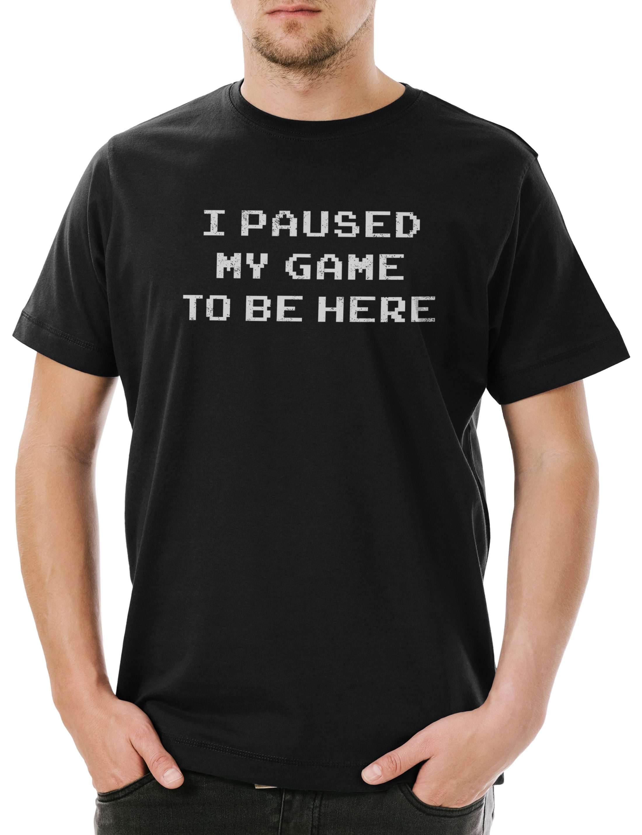 Trage unser I Paused My Game To Be Here Herren T-Shirt bei deiner nächsten Zocker-Session oder beim Online-Gaming und trage den Sieg davon! Das ideale Geschenk für Geburtstage, Weihnachten, Ostern, Vatertag und Muttertag oder einfach als Aufmerksamkeit für einen guten Freund/Freundin, Kollegen/Kollegin!