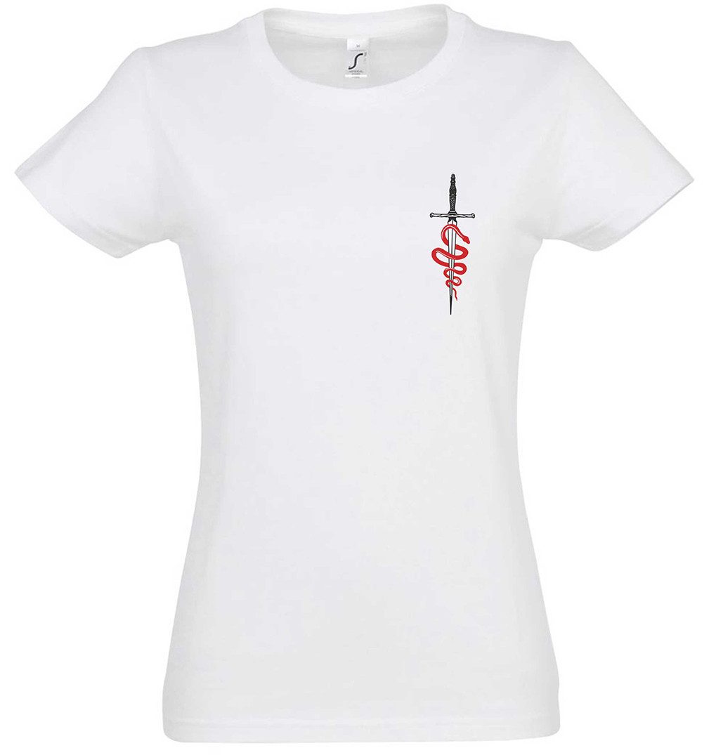 Tattoos und Rock & Roll liegen Dir am Herzen? Dann wird unser Snake & Knife II Damen T-Shirt sicherlich eines deiner neuen Lieblingsstücke! Das ideale Geschenk für Geburtstage, Weihnachten, Ostern, Vatertag und Muttertag oder einfach als Aufmerksamkeit für einen guten Freund/Freundin, Kollegen/Kollegin!