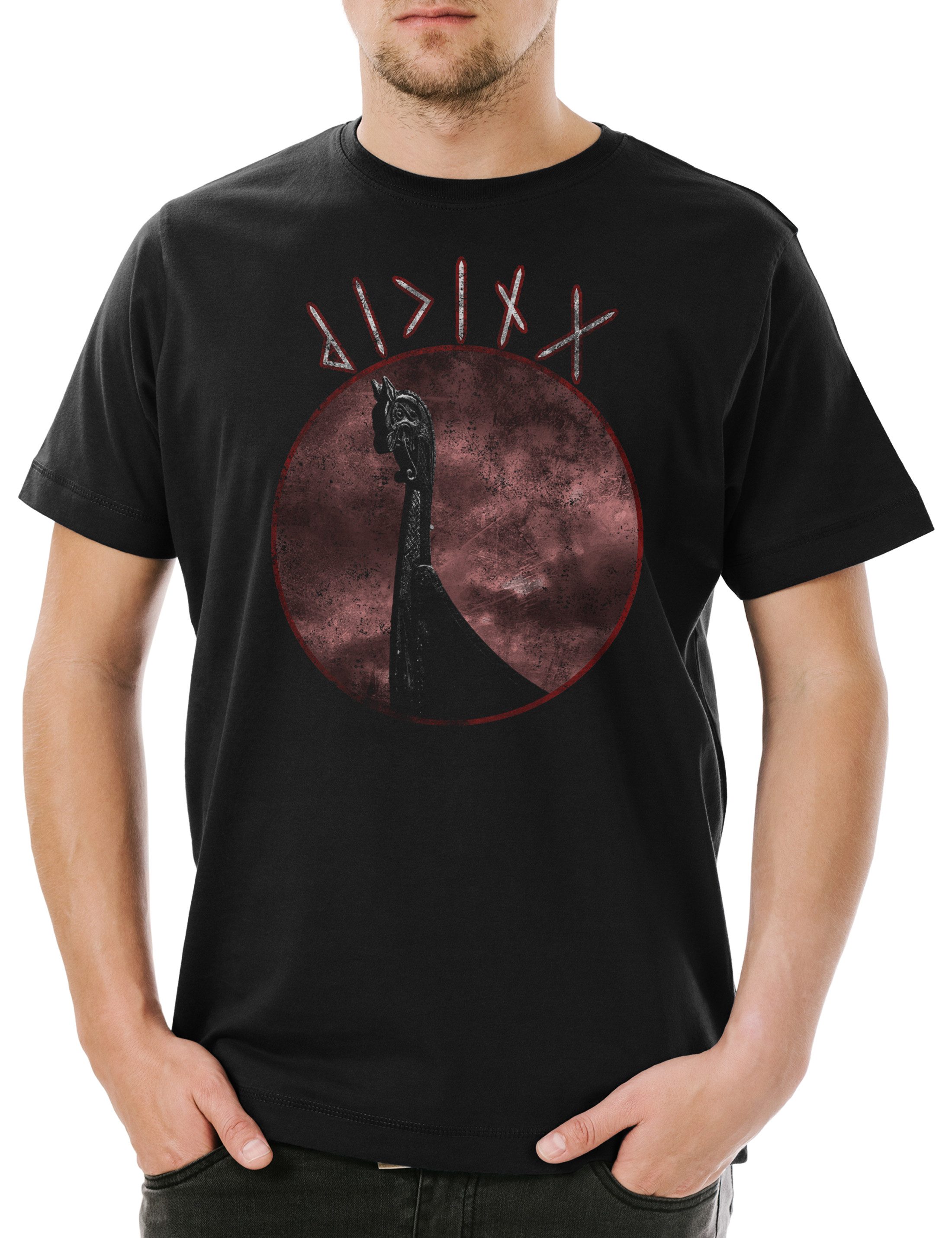 Entdecke unser Viking Ship Dragon Head Herren T-Shirt für eingefleischte Wikinger Fans und Berserker die auf dem nächsten Larp-Festival oder Metal Konzert eine gute Figur machen wollen! Das ideale Geschenk für Geburtstage, Weihnachten, Ostern, Vatertag und Muttertag oder einfach als Aufmerksamkeit für einen guten Freund/Freundin, Kollegen/Kollegin!