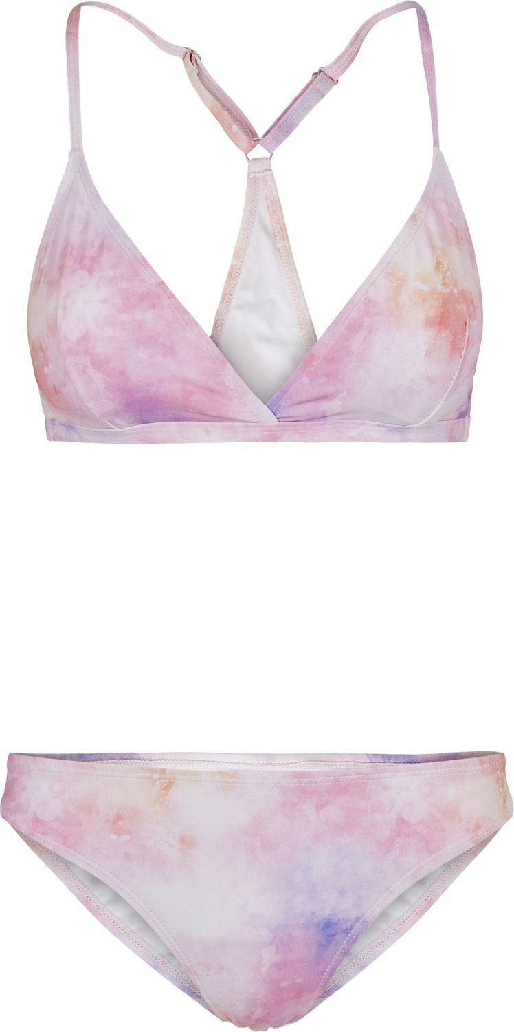 Dieser knapp geschnittene Dreiecks-Bikini überzeugt durch einen engen Sitz und viel freie Hautfläche zum Sonnenbaden. Der frische Batik-Look wird ungezwungen und sommerlich leicht. Eine besondere Augenweide ist der rückwärtige Part des Oberteils, welcher ein elegant nach unten erweiterndes Dreieck zeigt.
