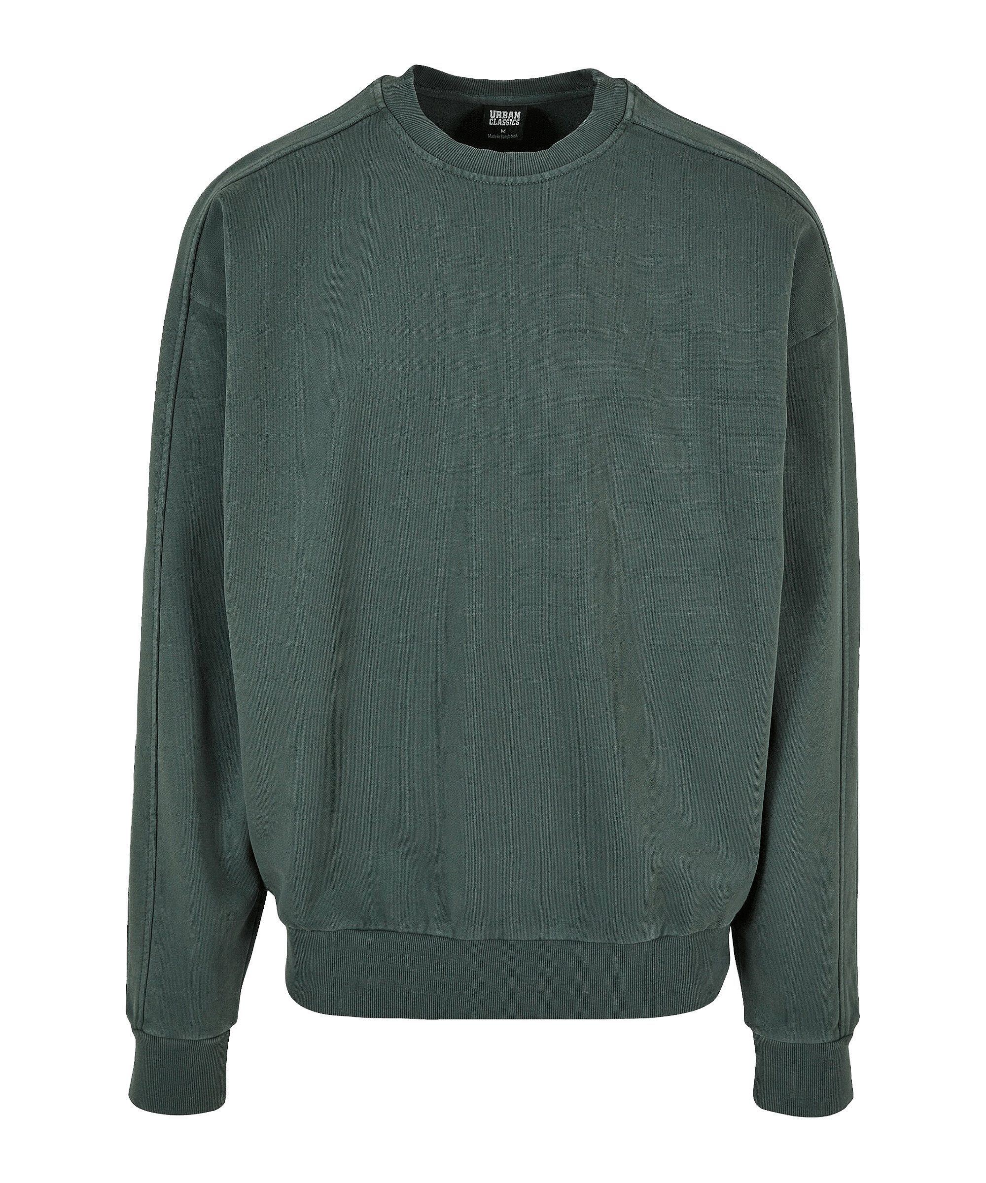 Das bequeme Männer Crewneck präsentiert sich stimmig mit seiner leicht gebleichten Waschung und durchdachten Details. Diese bestehen aus einem Rundhalsausschnitt mit halbkreisförmigem Beleg im Nacken, breiten Rippenbündchen an Ärmeln und Saum sowie einer angesagten Loose Fit Passform mit weit überschnittenen Schultern. Das schwere Baumwoll-Terry-Material ergänzt den Style des Herren Oberteils perfekt.