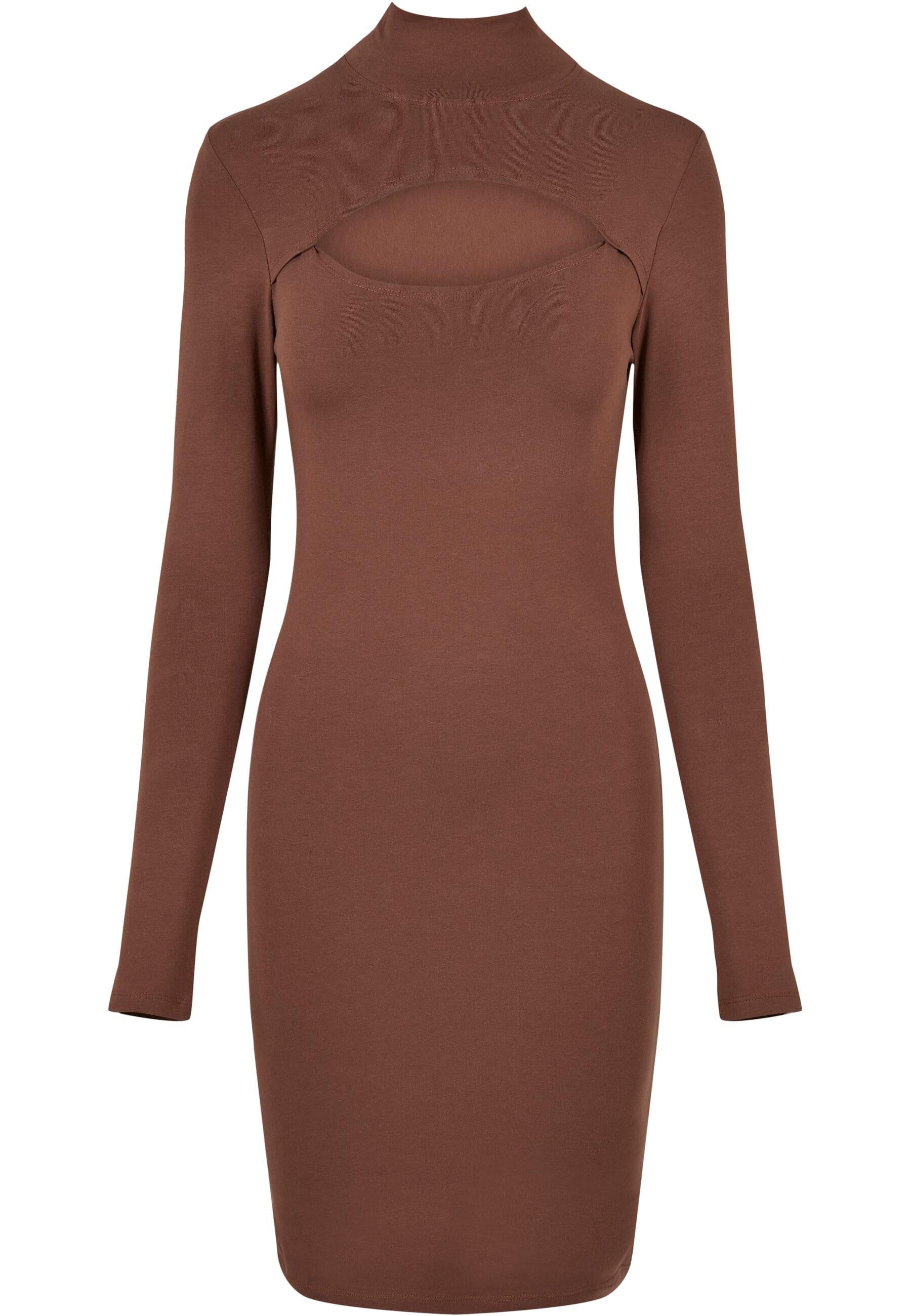 Das Damen Dress aus elastischem Stretch-Jersey erregt garantiert Aufmerksamkeit. Die Passform schmiegt sich figurnah an den Körper und zaubert eine feminine Silhouette – sexy, dank der kurzen Длина und den freien Knien. Für Raffinesse sorgt die Kombination des Cut-out Dekolletés mit dem Rollkragen. Das Damen Kleid verfügt abschließend über lange Ärmel und wirkt dadurch noch eleganter.