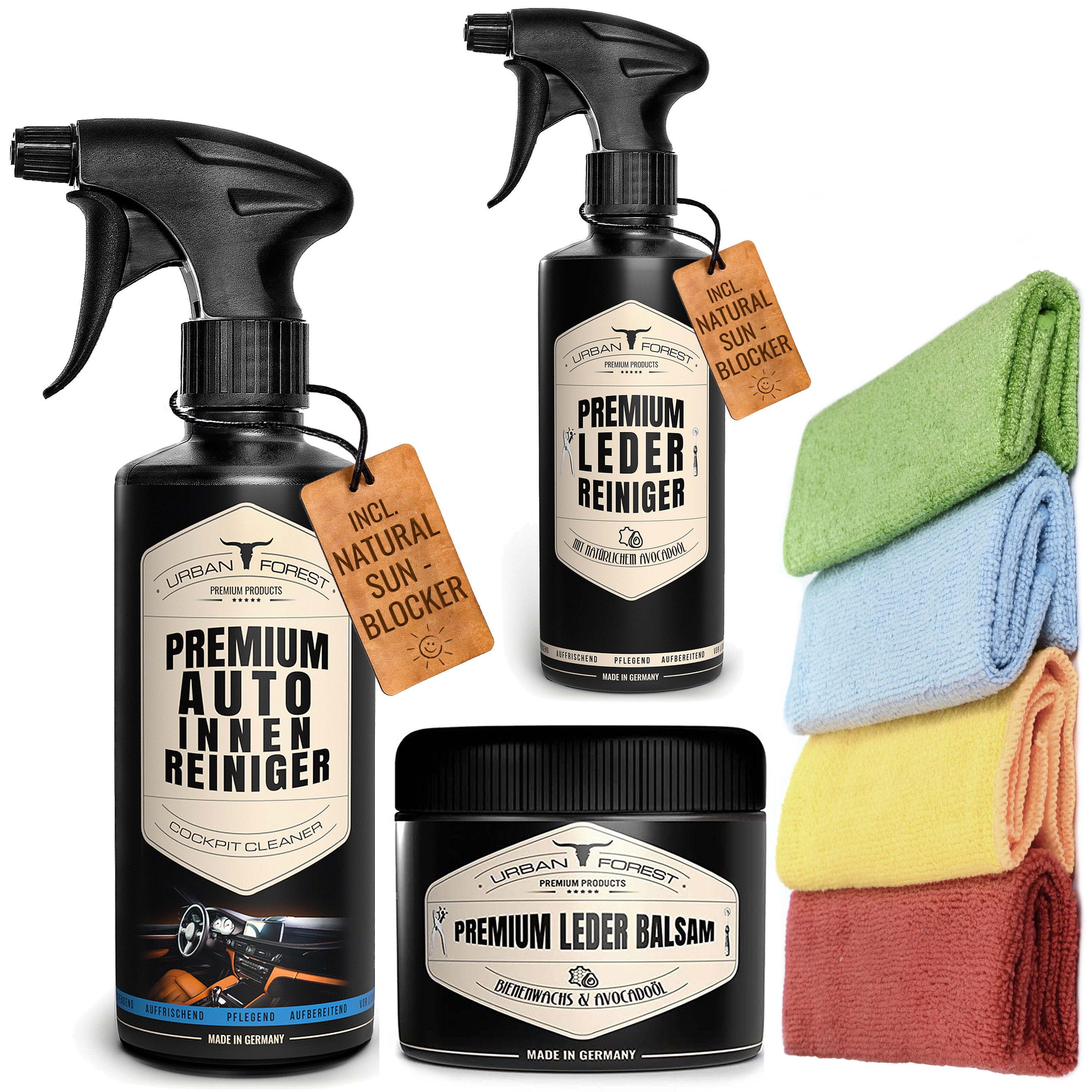 PROFESSIONELLE LÖSUNG ZUM AUTO REINIGEN und veredelt mit Avocado-Öl. Diese Cockpit Pflege mit Tiefenwirkung wurde in Premium Qualität für höchste Ansprüche in Deutschland produziert. Auch geeignet als Lederreiniger oder Interior Cleaner reinigt, pflegt und spendet diese Auto Pflege Feuchtigkeit, um den Auto-Innenraum aufzubereiten und optimalen Schutz zu verleihen. Dabei wirkt es veredelnd, auffrischend und angenehm duftend. Es zieht schnell ein und ist frei von Harz und Säure ENTWICKELT VON FÜHRENDEN REINIGUNGSEXPERTEN mit besten Premium Inhaltsstoffen hergestellt für Auto Reinigung und Pflege. Dieser Innenreiniger ist geschaffen für höchste Ansprüche für Polsterreinigung, Lederaufbereitung der Autositze, Autoauffrischung und Autoaufbereitung. Es bietet natürlichen Lichtschutz, führt zu neuem Glanz, schützt alle Leder- und Kunststoffteile vor Austrocknung, Rissbildung und verlängert die Lebenszeit des Innenraums URBAN FOREST PREMIUM LEDER BALSAM ist optimal geeignet für sämtliche Glattlederprodukte. Als Reinigungsmittel für Taschen oder Schuhe, als Pflegemittel für Leder oder Autoleder, Politur für Ledergarnituren, Möbel, Pflege für Sattelzeug, Motorradbekleidung, Lederbekleidung, Hundeleinen oder Lederpflege Auto. Die Leder Reinigung Auto, Schuhe und Taschen können Sie mit diesem Lederfett genauso durchführen. Nicht auf Nubuk, Velours, Wild- und Rauleder anwenden URBAN FOREST PREMIUM LEDER BALSAM Anwendung: Wir empfehlen Ihnen, mit einem Schwamm oder weichen Tuch für Lederpflege das vorab gereinigte Leder dünn und gleichmäßig mit unserem Leder-Balsam als Pflegeprodukt einzureiben. Im nächsten Schritt gut einziehen lassen und ggfs. das Leder mit einem weichen Tuch oder einer weichen Lederbürste nachpolieren. Tipp: Zur Lederreinigung und Lederpflege empfehlen wir unseren Lederreiniger von URBAN FOREST Premium Leather Care PREMIUM QUALITÄT & SERVICE: Eine Top Qualität zu gewährleisten ist unsere höchste Priorität. Mit Premium Inhaltsstoffen und Herstellung in Deutschland zu fairen Preisen gehen wir hierbei keine Kompromisse ein. Dabei möchten wir dir alle wissenswerten Informationen zu URBAN FOREST PREMIUM LEDER BALSAM zum Pflegen von Lederprodukten im Vorfeld liefern. Dazu ist unser freundliches Service-Team für mögliche Fragen auch per Telefon oder per E-Mail für dich erreichbar HÄLT IHREN PKW INNENRAUM BESTÄNDIG FRISCH Der Premium Auto Innen Reiniger von URBAN FOREST wurde von den besten Reinigungsexperten Deutschlands entwickelt für beste Wirksamkeit und garantierte Top Resultate. Überlassen Sie nichts dem Zufall, vertrauen Sie deutscher Qualität. Der Reiniger versiegelt strukturierte und matte Oberflächen und erhält die natürliche Feinstruktur von exklusiven feingenarbten Armaturentafeln und ist speziell geeignet für Kunststoffe mit soft-touch Effekt und feinste Glattlederoberflächen. Er verhindert effektiv elektrostatische Aufladungen, wirkt staubabweisend und schützt vor erneuter Verschmutzung. Das ursprünglich seidenmatte Aussehen des Cockpits bleibt erhalten, störende Reflektionen an der Frontscheibe werden vermieden. Hinterlässt einen angenehmen, frischen Duft. Der Premium Auto Innen Reiniger ist von URBAN FOREST ist Silikon- und lösemittelfrei. Das Premium Lederbalsam von URBAN FOREST nährt & pflegt das Leder nachhaltig mit rückfettenden Komponenten für älteres Leder, die es geschmeidig und reißfest machen ohne einen Schmierfilm zu hinterlassen. Es verlängert die Haltbarkeit des Leders nachhaltig. URBAN FOREST liebt Leder, macht keine Kompromisse bei der Wirksamkeit und wird aus äußerst hochwertigen Inhaltsstoffen produziert. Das Premium Lederbalsam von URBAN FOREST bietet keine Möglichkeit der Verunreinigung des Leders. Als Universal-Pflegemittel für Lederprodukte ist das Premium Lederbalsam u.a. bestens geeignet für Lederwaren aller Art, Lederbekleidung, Autoleder, Schuhe und sämtliche weitere Lederprodukte.