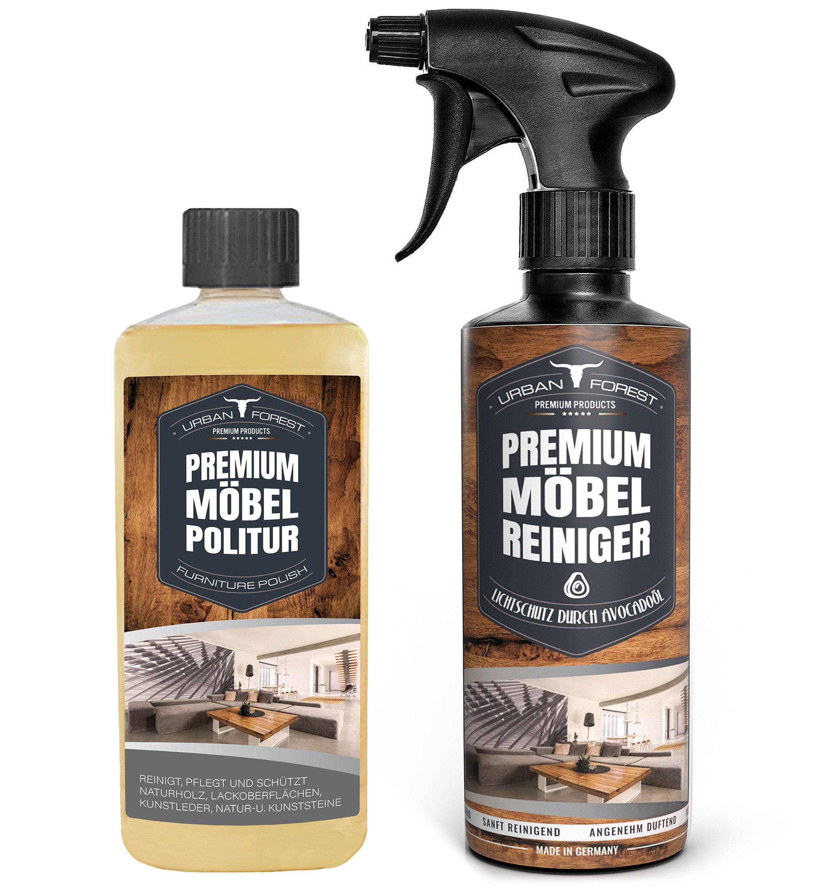 SCHÜTZEN SIE IHRE LIEBLINGSPRODUKTE MIT DEM MÖBELREINIGER VON URBAN FOREST PREMIUM HOME CARE. Zur Reinigung von Holz und Möbel können Spezial-Putzmittel, Allzweckreiniger oder Haushaltsreinigungsmittel genutzt werden. Um langfristig und nachhaltig Freude an den Holzprodukten zu haben, sollten diese allerdings einer regelmäßigen Pflege mit professionellen Reinigungsmitteln unterzogen werden. Der PREMIUM MÖBEL-REINIGER von URBAN FOREST ist hierbei besonders geeignet zur Pflege von Holz, Stein, Polster und Kunststoffen. So können Sie sämtliche Möbel in Ihrem Haushalt oder Garten abdecken. Zur ergänzenden Pflege eignen sich gängige Holzflegemittel wie u.a. Holz Öl, Teak Öl, Holzwachs, Möbelöl, Möbelwachs, Holz Regenerator oder Möbel & Holz-Politur. Auch eine Holz Lasur oder Holz Lotion ist zur Holz-Pflege zu empfehlen. Hierbei ist zu berücksichtigen ob die Holzlasur innen oder außen verwendet wird. Holzlasur außen sollte beispielsweise je nach Witterungsbelastung Ihrer Gartenmöbel häufiger eingesetzt werden als für Holzmöbel im Innenbereich. Für einige Holzarten wie z.B. Teakholz gibt es spezielle Holz Pflegeöle wie Teaköl. URBAN FOREST PREMIUM MÖBEL REINIGER ist geeignet für die meisten Holzarten. PREMIUM MÖBEL-REINIGER reinigt, pegt und schützt insbesondere lackiertes und natürliches Holz, Lack- und Kunstleder-Oberächen, Natur- und Kunststeine. PREMIUM MÖBEL-REINIGER entfernt mühelos Fett- und Wasserecken, Fingerabdrücke und vieles mehr. Ideal zum Entfernen von Schuhcreme, Teerecken und Putzstreifen. Bestens geeignet für Antiquitäten, Parkett und alle anderen Hölzer. Hinweise: Es wird empfohlen immer eine Prüfung auf Materialverträglichkeit an einer nicht sichtbaren Stelle durchzuführen. PREMIUM HOLZ-ÖL AUS DEUTSCHER MANUFAKTUR: Das Holz-Pflegemittel mit antistatischer Wirkung ist staubabweisend und eignet sich nicht nur zum Reinigen von Holz sondern ist auch gleichzeitig ein Stein-Reiniger in Profi Qualität. Als Aktiv-Reiniger wurde er von Reinigungsexperten in Deutschland entwickelt und nur mit besten Premium Inhaltsstoffen produziert. Dieses Pflege- und Reinigungsprodukt kann u.a. als Möbelpolitur, Teak-Öl, Holz Reiniger, Möbel Pflege oder Holz-Lasur genutzt werden HOLZ-REINIGUNGSMITTEL FÜR PROFIS: Natürliche Stoffe wie Holz und Stein benötigen stetige Reinigung und Pflege. Diese Premium Möbel Politur entfernt mühelos hartnäckigste Verschmutzungen, reinigt sanft, führt zu neuem Glanz und verleiht optimalen Schutz. Es ist bestens geeignet zur Entfernung von Fett- und Wasserflecken, Teerflecken, Putzstreifen, wie auch zur Pflege von Parkett und Antiquitäten. Die Möbelpolitur verlängert die Lebenszeit der Möbel dabei nachhaltig wie ein Profi-Reiniger PFLEGEMITTEL FÜR ALLE HOLZARTEN: Anders als herkömmliche Öle aus dem Baumarkt ist dieses Möbel Öl auch optimal geeignet als Kunststoff-Reiniger zum Gartenmöbel reinigen, oder als Fliesen-Reiniger. Es kann nach dem Schleifen oder Beizen von Holz als Holzschutz oder als Holzfarbe genutzt werden. Dabei erzielt die Politur bei der Möbelpflege mindestens so gute Erfolge wie ein Möbel-Wachs. Эко-товар reinigt, poliert und konserviert diese Holzpflege innen und aussen streifenfrei SPEZIALPUTZMITTEL FÜR PROFIS: Natürliche Stoffe wie Holz und Stein benötigen stetige Reinigung und Pflege. Dieser Premium Möbelreiniger ist geschaffen für höchste Ansprüche zur Möbelreinigung, Möbelaufbereitung und Möbelauffrischung. Es bietet natürlichen Lichtschutz, führt zu neuem Glanz, schützt Holz vor Austrocknung & Rissbildung. Das Holz wird sauber und erhält seinen Glanz zurück. Es verlängert die Lebenszeit der Möbel dabei nachhaltig wie ein Profi-Reiniger PREMIUM QUALITÄT & SERVICE: Eine Top Qualität zu gewährleisten ist unsere höchste Priorität. Mit Premium Reinigungssets und Herstellung in Deutschland zu fairen Preisen gehen wir hierbei keine Kompromisse ein. Dabei möchten wir Ihnen alle wissenswerten Informationen zum URBAN FOREST PREMIUM MÖBEL REINIGER im Vorfeld liefern. Dazu ist unser freundliches Service-Team für mögliche Fragen auch per Telefon oder per E-Mail für Sie erreichbar