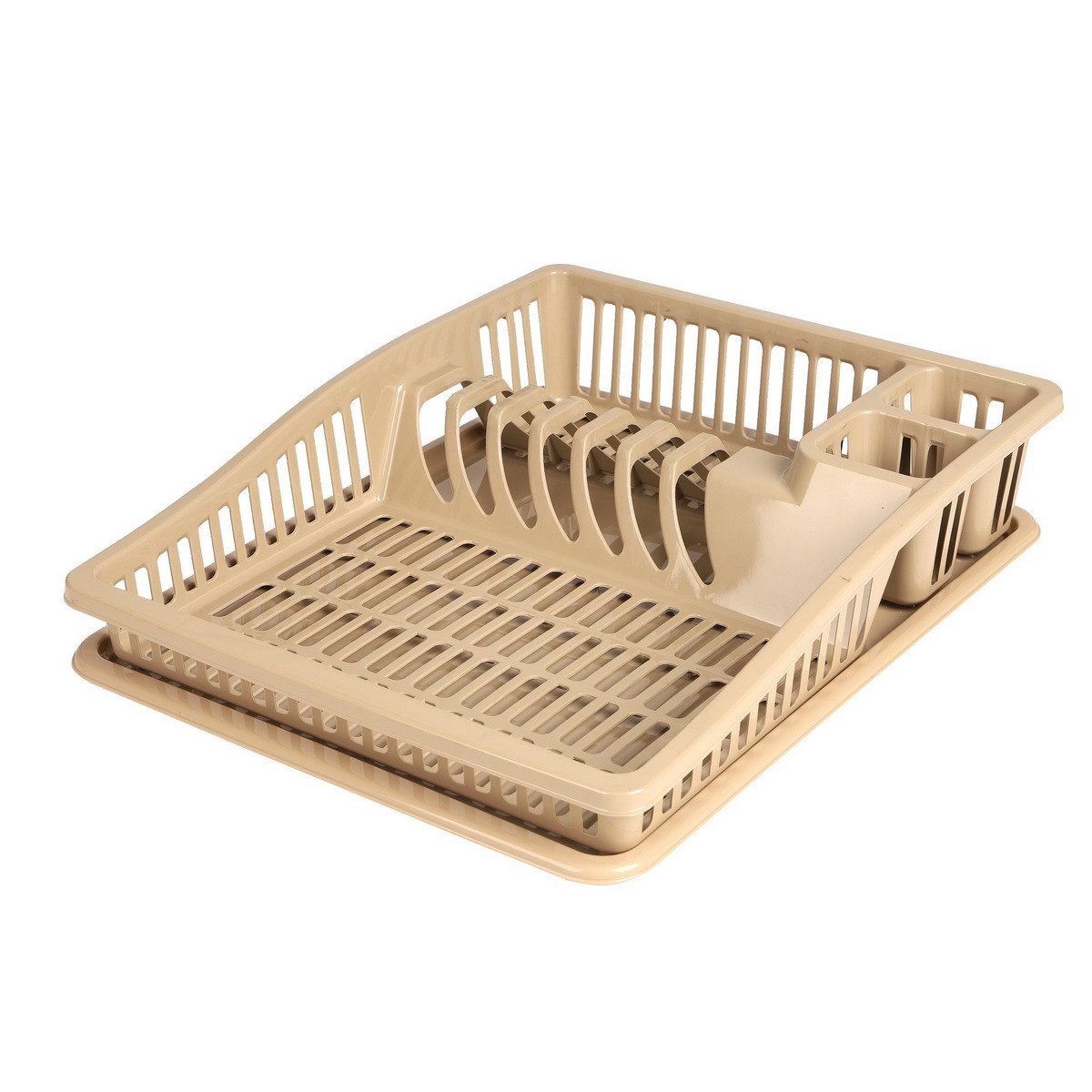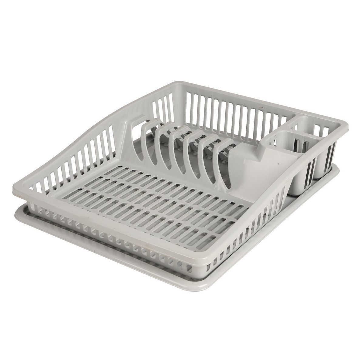 - Geschirrablage mit Abtropfschale - Küchenhelfer zum Trocknen und Aufbewahren von Geschirr und Besteck - einsetzbar in Küche, Haushalt, im Wohnwagen, Wohnmobil oder beim Camping - Abtropfgitter – perfekt für Teller, Tassen, Schälchen oder kleine Töpfe - 2 Besteckfächer - 7 Einschübe für Teller / Frühstücksteller - Material: Kunststoff - leicht zu reinigen, spülmaschinengeeignet - Maße: 38,5 x 31 x 8 cm