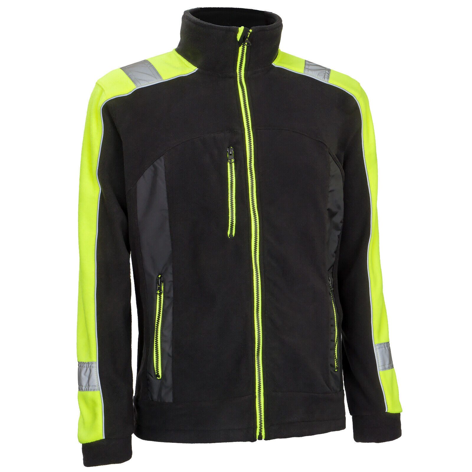 Berufsjacke Vliesarbeitsjacke Arbeitsjacke Herren Vlies schwarz-gelb Diese schwarze-gelbe und weiche Vliesjacke eignet sich gut für alle Arbeiten im Outdoor sowie im Indoor. Der Stehkragen an der Vliesjacke schützt der perfekt vor Kälte und Wind. Eigenschaften der Jacke: 3 praktische Taschen mit Reißverschluß, reflektierende Streifen auf den Schultern und Ärmeln, Strickbündchen an Handgelenken Strickbünchen an der Unterseite der Jacke, Marke: URGENT, Stofferstärkung an den Ärmeln: HI-VIS, Farbe: schwarz-gelbe Vliesjacke Materialzusammensetzung: 100% Polyester, Grammatur: 300g/m2 Größen: von M bis XXXL. Hauptmaterial: Polyester, Name der Abteilung: Unisex, Herren.