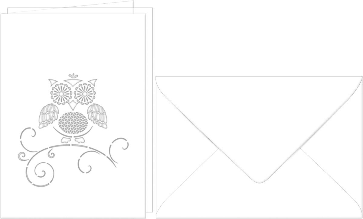 Designpapier Doppelkarte A6 gelasert + Kuvert VE=5 Sets Eule weiß