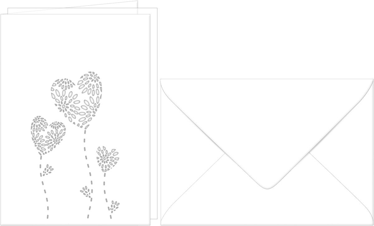 Designpapier Doppelkarte A6 gelasert + Kuvert VE=5 Sets Herzblume weiß