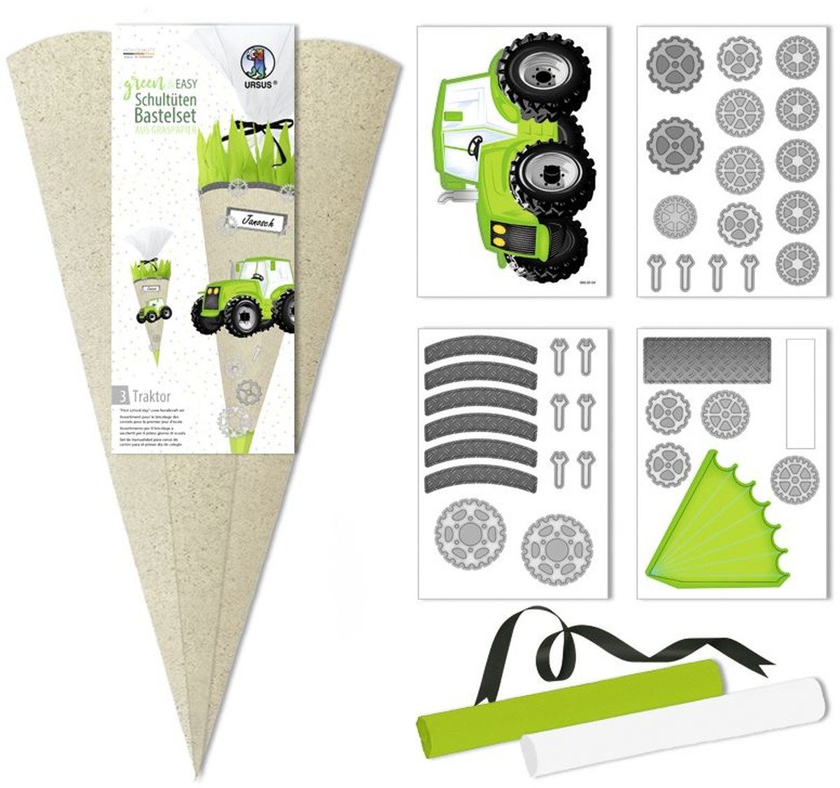 Das Schultüten Bastelset 'Green & Easy' bietet dir eine kreative Möglichkeit, den Schulanfang besonders zu gestalten. Mit dem 6-eckige Rohling aus Graspapier kannst du eine einzigartige Schultüte basteln. Die Stanzteile sind teilweise mit eleganter Folien-Veredelung oder funkelndem Glitter versehen. Im Set ist eine leicht verständliche Bastelanleitung enthalten, die dich Schritt für Schritt unterstützt. Die Schultüte hat einen Ø von 20 cm und eine Длина von 68 cm. Die Marke URSUS steht für kreative Bastelideen. Schaffe ein unvergessliches Erlebnis für den Schulanfang!