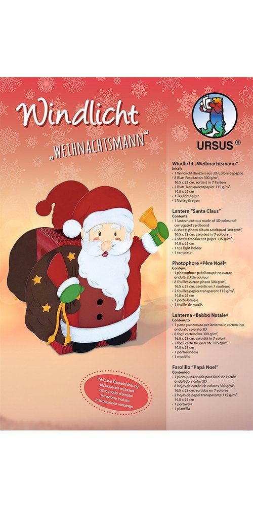 Ein wundervolles Set mit Material für ein Windlicht in Form eines Weihnachtsmannes. Im Set eine Motiv-Vorlage mit einer Anleitung. Всеs dabei, für einen schönen Bastelnachmittag.