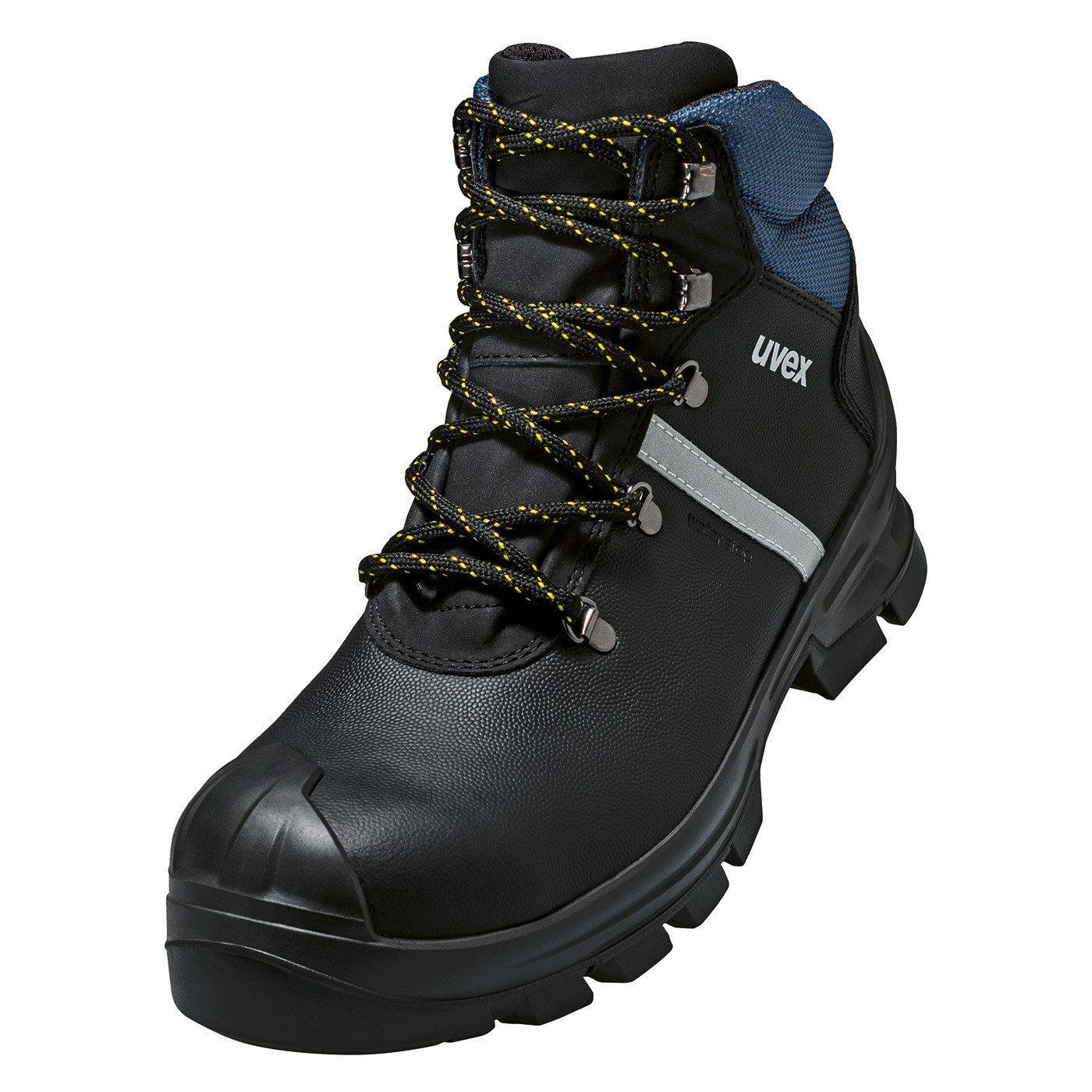 Produkteigenschaften: - Robuster, leichter und moderner S3-Sicherheitsschnürstiefel mit breiter Passform - Все Sohlenmaterialien sind frei von Silikonen, Weichmachern und anderen lackbenetzungsstörenden Substanzen - Длинаre Haltbarkeit des Obermaterials über der Zehenkappe durch geschäumte Überkappe aus Polyurethan - Schmutzunempfindliches, leichtgängiges und hitzeunempfindliches Schnürsystem - Außerordentlicher Tragekomfort, zu dem ein neu entwickelter Leisten ebenso beiträgt wie die klimaoptimierten, atmungsaktiven Materialien - Zur Vermeidung von Druckstellen nahezu nahtfreie Schaftkonstruktion aus wasserabweisendem Leder - Auswechselbares, antistatisches Komfortfußbett mit Feuchtigkeitstransportsystem und zusätzlicher Fersen und Vorfußdämpfung - Weich gepolsterte Staublasche und Kragen - Ausstattung: Geschlossener Fersenbereich, Im Sohlenverlauf integrierter Fersenkorb, Non-marking-Sohle, Profilierte Sohle, Reflektierende Elemente, Weich gepolsterte Staublasche, Weich gepolsterter Kragen - uvex Technologie: uvex climazone, uvex medicare, uvex waterstop, uvex xenova®-System