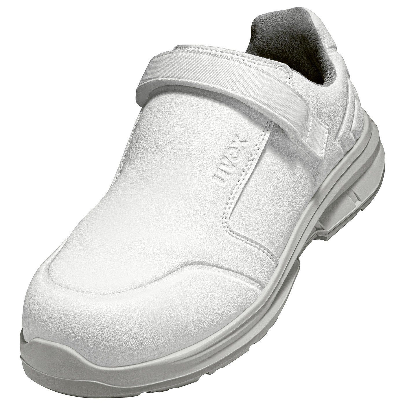 Schutzmerkmale: - erfüllt die ESD-Vorgabe mit Ableitwiderstand kleiner 35 Megaohm - 100 % metallfreie uvex xenova® Zehenschutzkappe – kompakt, anatomisch geformt, mit guter Seitenstabilität und thermisch nichtleitend - ergonomisch gestaltete Laufsohle aus Zweidichten-Polyurethan mit hervorragender Dämpfung und sehr guter Rutschhemmung