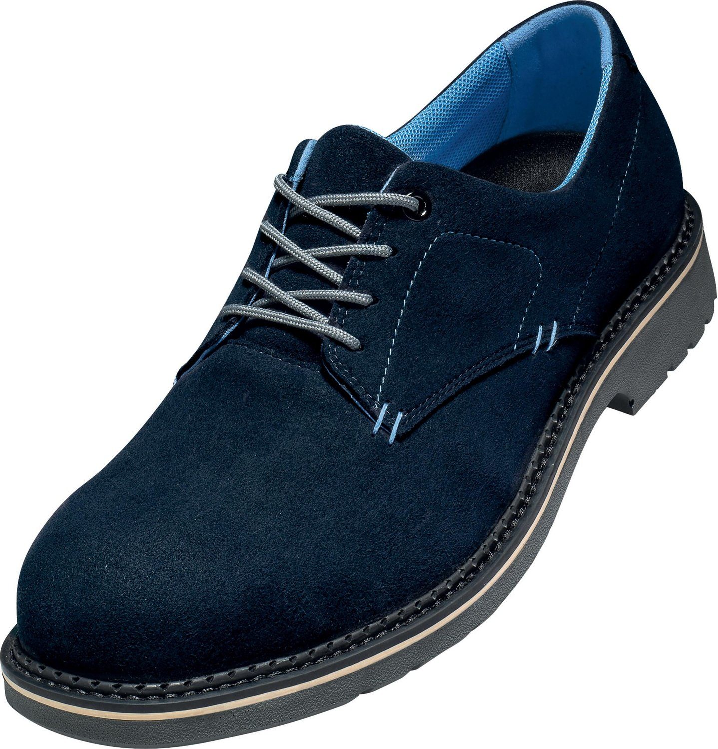 Ob im Büro oder in der Werkhalle - die lässigen uvex 1 business Sicherheitshalbschuhe lassen sich sowohl zur Chino, Anzug- als auch zur Arbeitshose stilvoll kombinieren. Nach außen hin erscheinen die uvex 1 business Schnürschuhe aus dunkelblauem Mikrovelours im klassischen Look. Die hellgrauen Schnürsenkel, die raffinierten Ziernähte und die markante Sohlennaht verleihen den Schnürschuhen zudem moderne Details. Die Sicherheitshalbschuhe sehen gut aus und schützen zudem zuverlässig vor Risiken am Arbeitsplatz: Die neue, besonders breite Stahlkappe sichert Zehen vor herabfallenden Gegenständen und Stößen ab. Die durchtritthemmende Zwischensohle schützt den Fuß vor spitzen Gegenständen von unten, ohne die Flexibilität des Schuhs einzuschränken. Die SRC-Laufsohle aus Polyurethan verhindert rutschen auf feuchten Keramikfliesen und Stahlböden. Dazu kommt die innovative uvex climazone Technologie, die übermäßiges Schwitzen in den Sicherheitshalbschuhen verhindert. So sind die smarten Schnürschuhe die idealen Begleiter für aktive Männer, die zwischen Büro und Werkhalle pendeln und dabei auf Style, Sicherheit und Komfort gleichermaßen Wert legen.