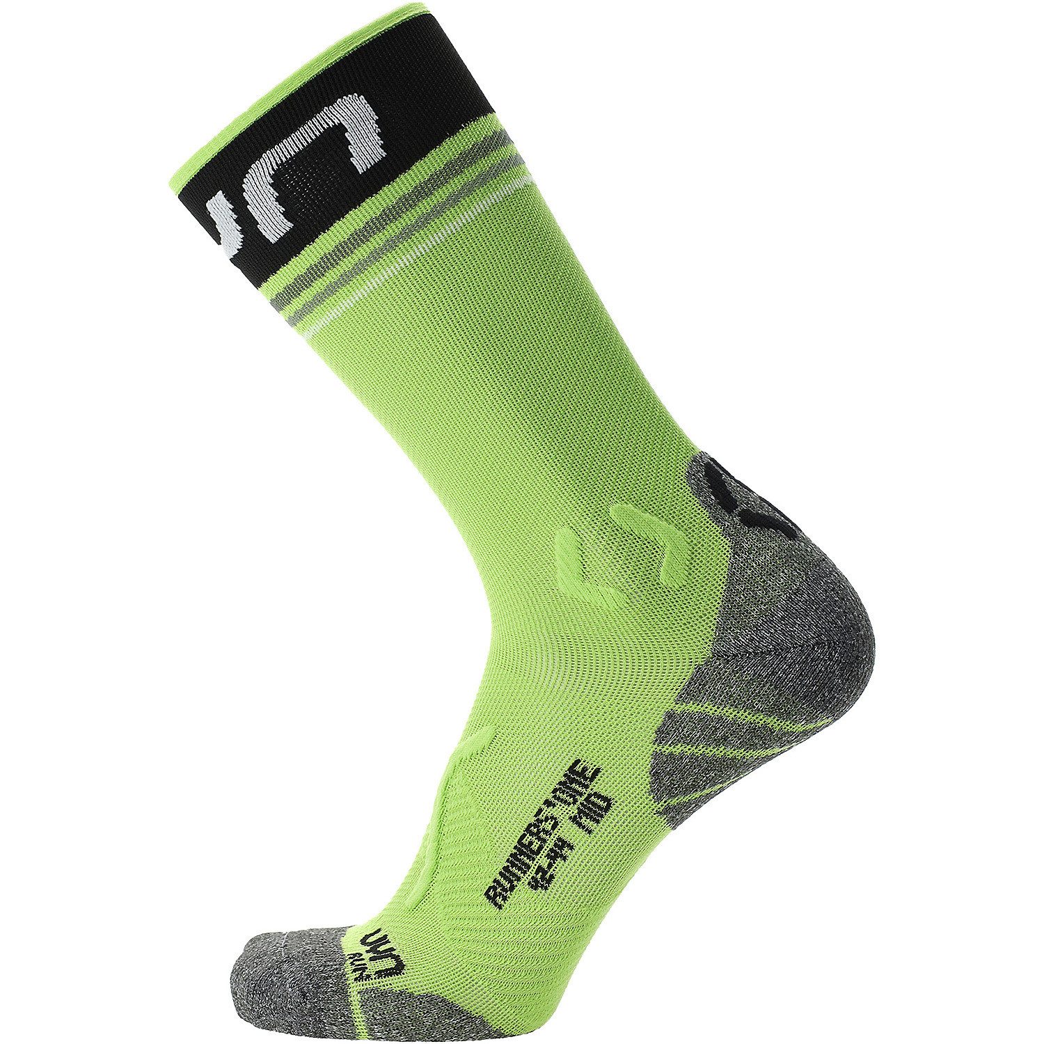 Dank der innovativen Zerocuff-Technologie bleibt die Socke perfekt am Bein haften, ohne dass das klassische Bündchen benötigt wird. Das Fehlen von Einschränkungen an der Wade ermöglicht eine bessere Durchblutung, was die Leistung und den Komfort des Fußes exponentiell erhöht. UYN Runner's One wurde entwickelt, um Ihnen nicht nur unschlagbare Leistung und Komfort, sondern auch Schutz zu bieten. Die 3D-Struktur Preshock Shield auf der Rückseite und die Anti-Impactor Konstruktion auf der Sohle absorbieren Stöße und schützen alle empfindlichen und empfindlichen Bereiche des Fußes.
