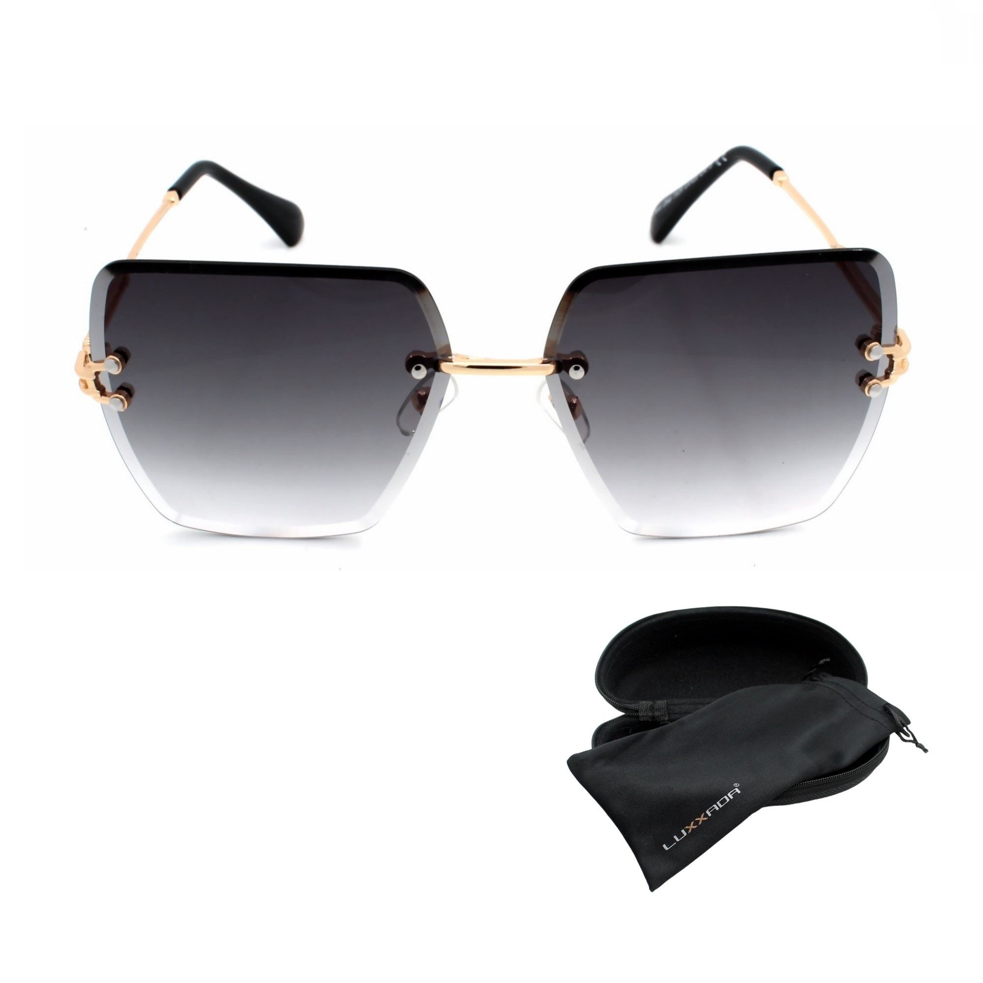 eine besondere Designer Sonnenbrille für Frauen mit schönen großen edlen Geschliffenen Gläsern in Rahmenlos Optik und mit Edelstahl Bügeln in Gold