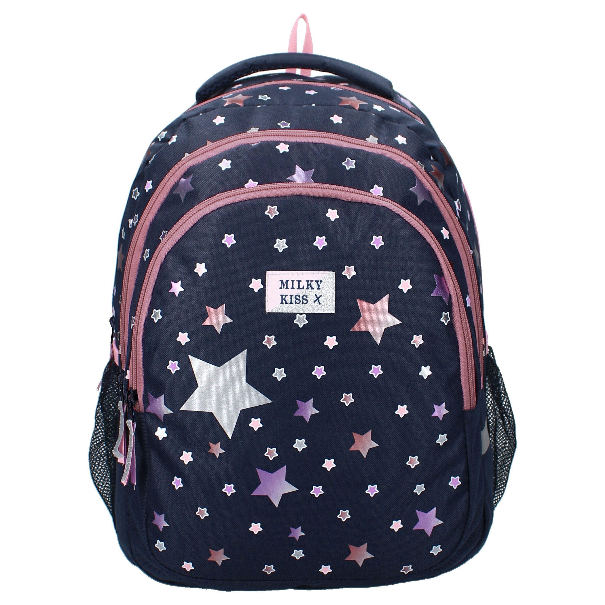 Entdecken Sie die Magie dieses Rucksacks von Milky Kiss aus der Kollektion Fable World. Die Tasche ist dunkelblau und mit süßen lila und rosa Sternen verziert. Das Hauptfach des Rucksacks ist geräumig und perfekt, um alle wichtigen Dinge zu verstauen, während die zwei zusätzlichen Fronttaschen bequem Platz für kleinere Gegenstände bieten. Die hochwertigen Reißverschlüsse sorgen für eine sichere Aufbewahrung und die gepolsterten und verstellbaren Schultergurte bieten auch an langen Tagen höchsten Tragekomfort. Ob für einen Tag in der Schule oder einen Ausflug mit Freunden, dieser Rucksack ist die perfekte Wahl für junge Trendsetter, die Stil und Funktionalität in einem suchen.