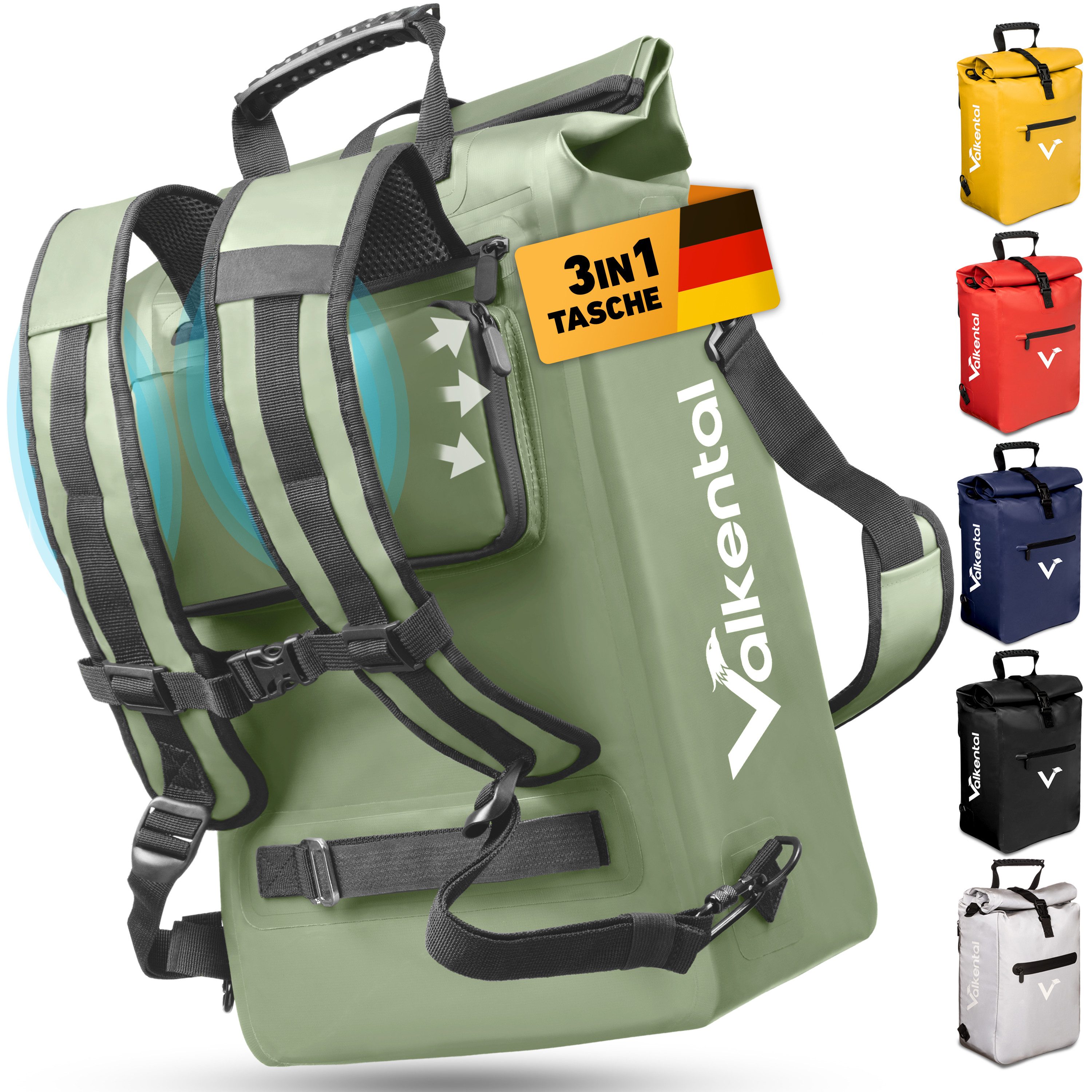 Die ValkOne Fahrrad-Gepäckträgertasche von Valkental ist die ideale Lösung für alle, die eine funktionale, stylische und flexible Fahrradtasche suchen. Ob auf dem Weg zur Arbeit, beim Wochenendausflug oder im Alltag – mit dieser 3in1 Bike Bag bist du für jede Situation perfekt ausgestattet. Dank des cleveren Designs lässt sich die ValkOne nicht nur als klassische Gepäckträgertasche, sondern auch als Rucksack oder Umhängetasche nutzen. Das verbesserte Tragesystem sorgt dabei für ein angenehmes Tragegefühl – egal ob auf dem Fahrrad oder zu Fuß. Besonders praktisch: Die Schultergurte sind dezent integrierbar, sodass du blitzschnell zwischen den Tragemodi wechseln kannst. Mit einem Volumen von 18 L oder 23 L, je nach Modell, bietet die ValkOne ausreichend Platz für Laptop, Kleidung, Einkäufe oder Sportausrüstung. Die durchdachte Innen- und Außenaufteilung mit mehreren Fächern ermöglicht dir eine perfekte Organisation und schnellen Zugriff auf alle wichtigen Gegenstände – ideal für Pendler, Studenten, Berufstätige oder Fahrradreisende. Auch das Thema Sicherheit kommt nicht zu kurz: Große Reflektoren auf beiden Seiten erhöhen deine Sichtbarkeit im Straßenverkehr – besonders bei Dämmerung und Dunkelheit. Gleichzeitig schützt das wasserabweisende, robuste Außenmaterial deine Habseligkeiten zuverlässig vor Regen und Spritzwasser. Die ValkOne wurde aus hochwertigen Materialien gefertigt und durchläuft strenge Qualitätskontrollen. So erhältst du eine langlebige, nachhaltige und belastbare Fahrradtasche, auf die du dich jederzeit verlassen kannst – auf dem Fahrrad wie im Alltag. Egal ob für den täglichen Weg ins Büro, den Einkauf oder lange Fahrradtouren – die ValkOne Bike Bag ist die durchdachte, stylische und praktische Lösung für dein aktives Leben mit dem Fahrrad. Перейти und flexibel durchstarten!
