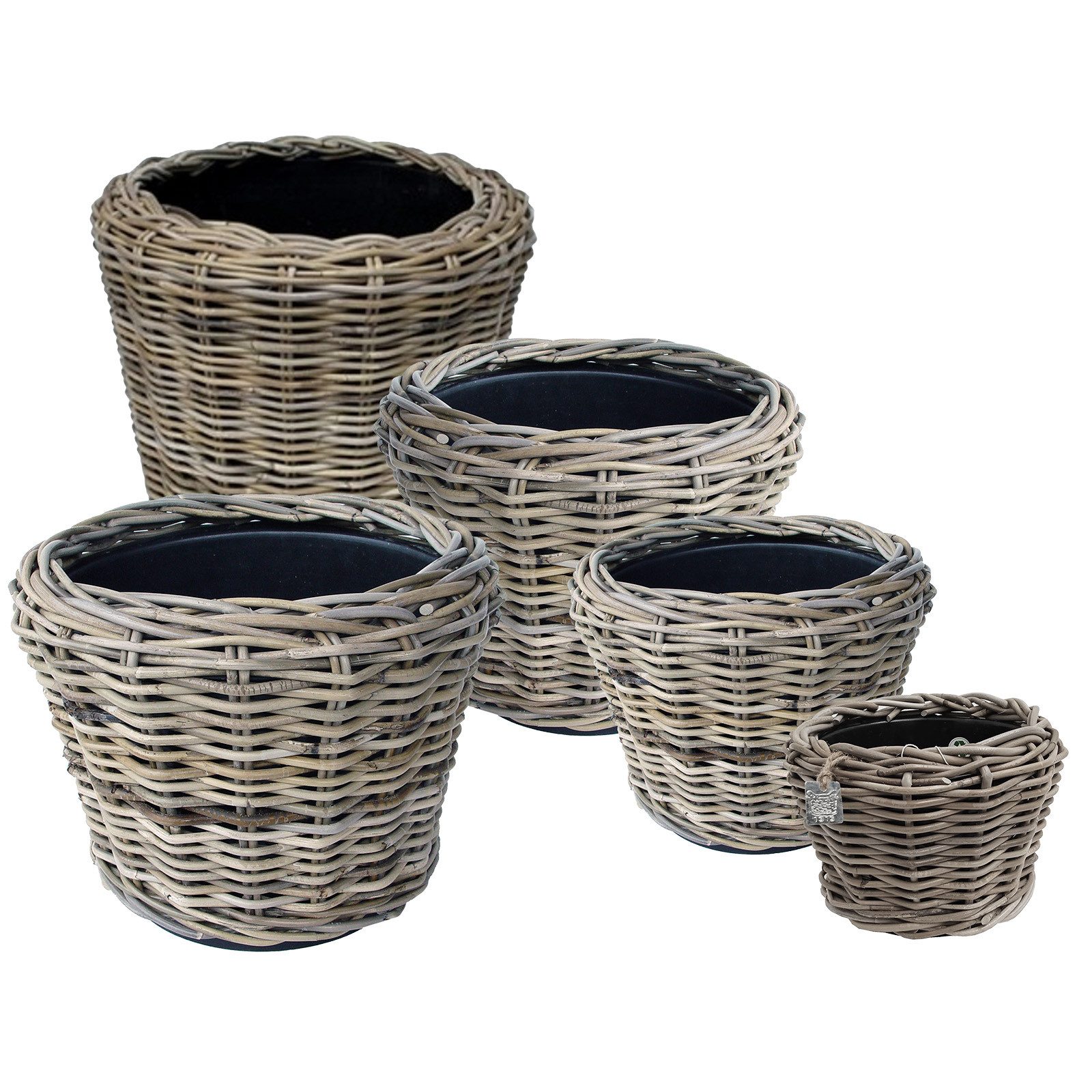 • 5x Pflanzkorb aus Rattan in 5 verschiedenen Größen