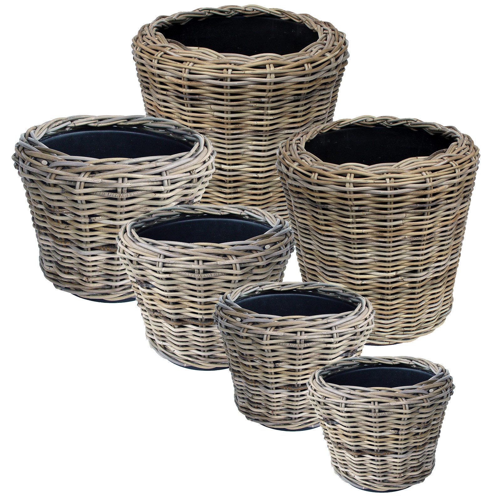• 6x Pflanzkorb aus Rattan in 6 verschiedenen Größen