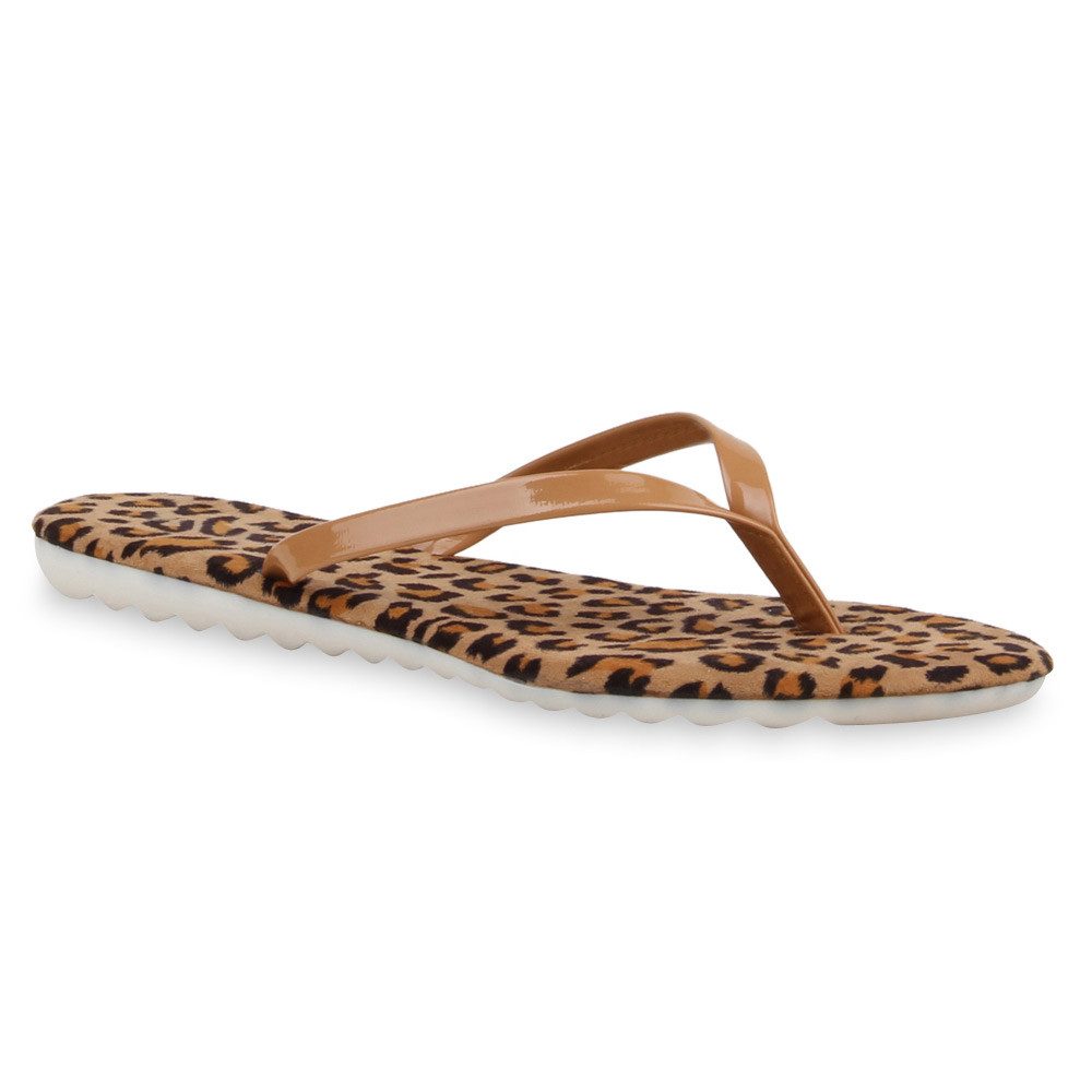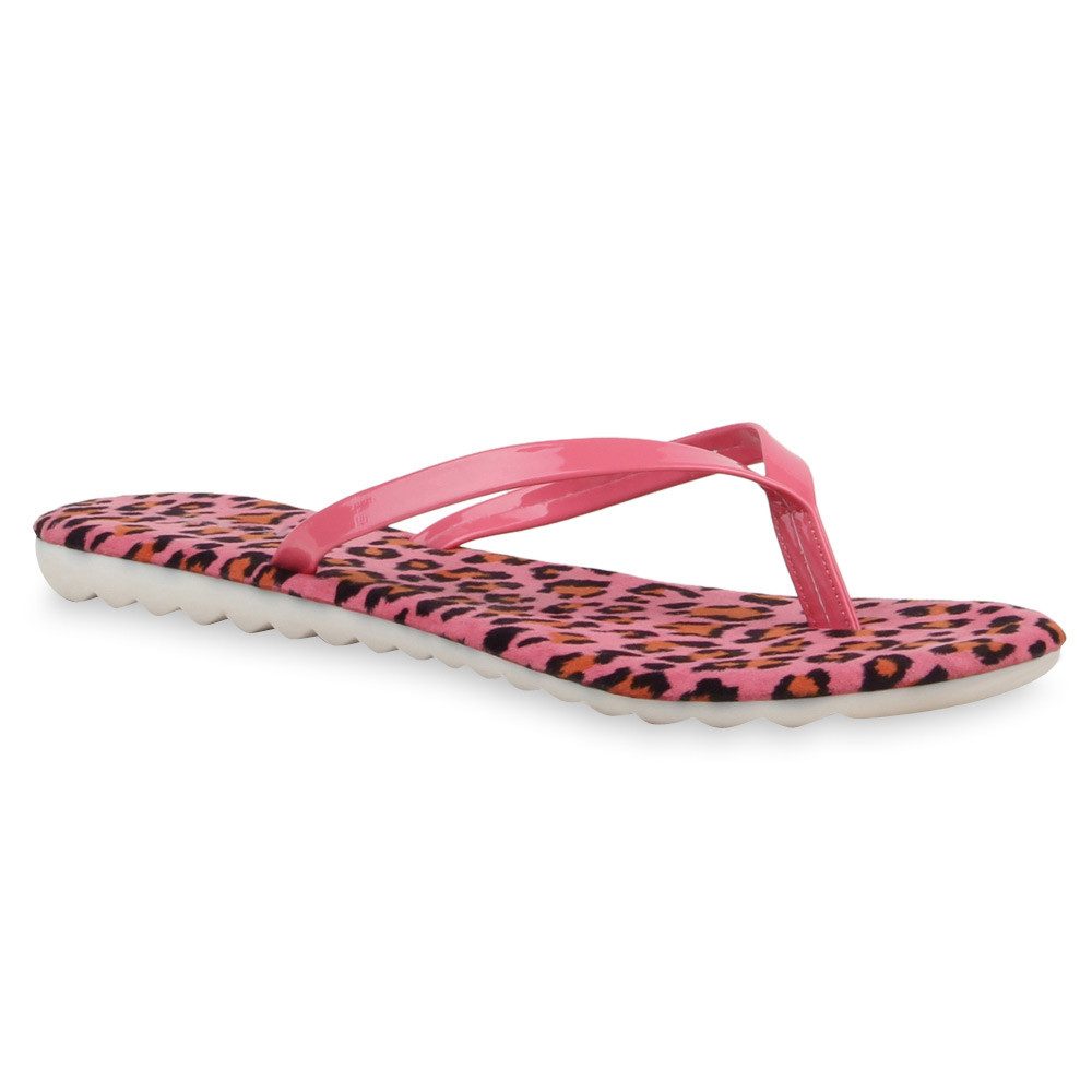 Besondere Merkmale | Sommerliche Damen Sandalen Zehentrenner Lack Snake Flats 75747 |