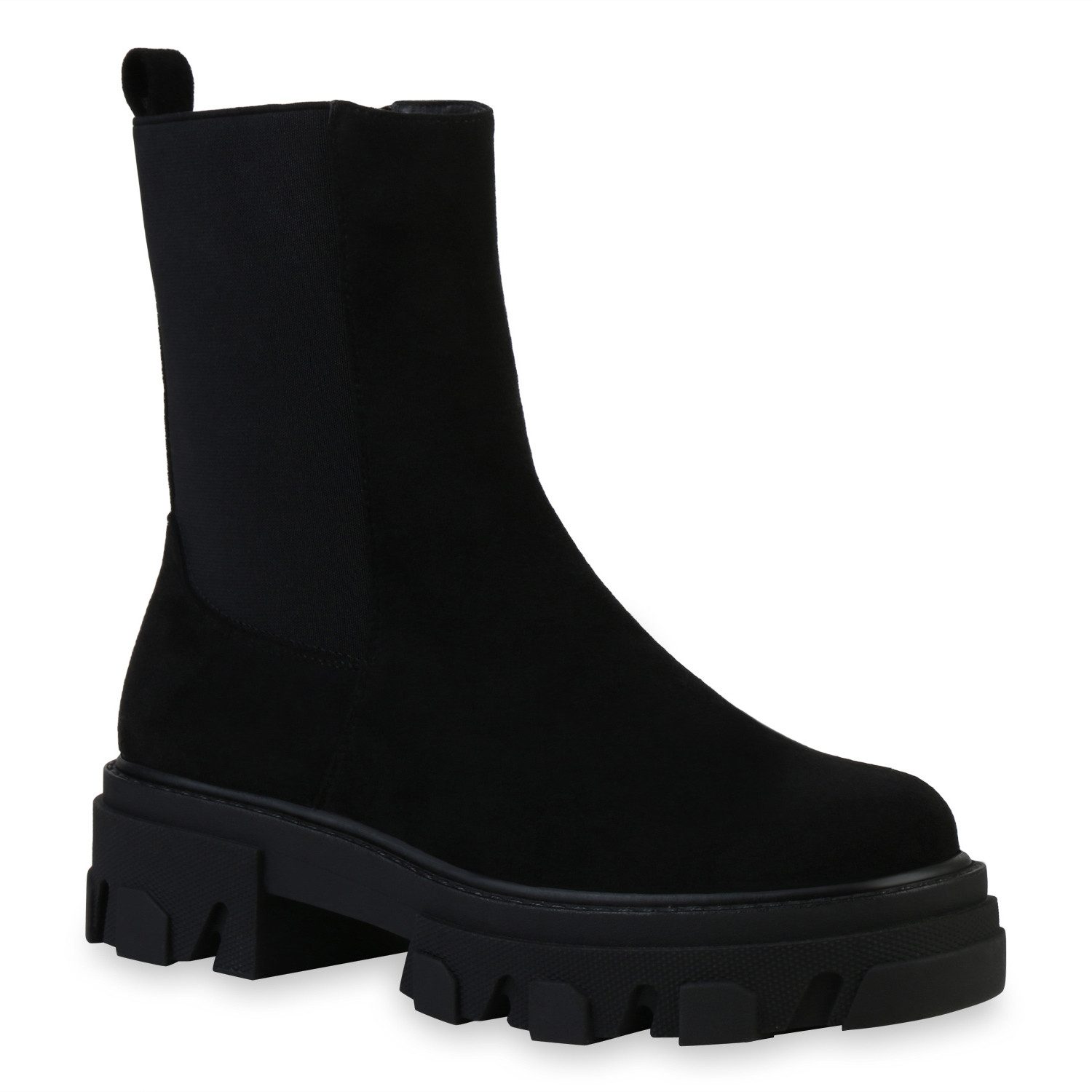 Besondere Merkmale | Damen Stiefeletten Plateau Vorne Boots Stiefel Profil-Sohle |