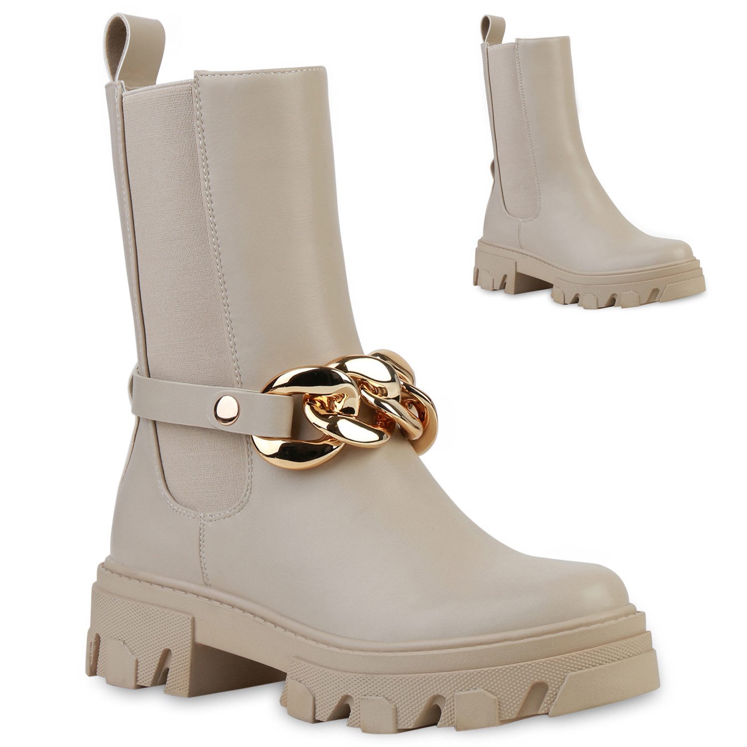 Die Plateau Boots wirken lässig und vervollständigen zahlreiche Herbst-Looks. Die Damen Stiefel bestehen aus Kunstleder und Textilstoff und ergeben einen perfekter Material-Mix. Eine modische Kette dient als Blickfang und lässt sich nach Belieben tragen oder abnehmen. Der Blockabsatz ist 4,5 cm hoch, die vordere Plateausohle punktet in 3 cm Höhe. Kombiniert mit Jeans und Pullover ist man für Schule & Freizeit bestens angezogen.Diese Maßangaben gelten für die Размер обуви 37aДлина Innensohle (cm):24bAbsatzhöhe (cm):4.5cSchafthöhe (cm):19.5dSchaftweite (cm):24ePlateau Vorne (cm):3