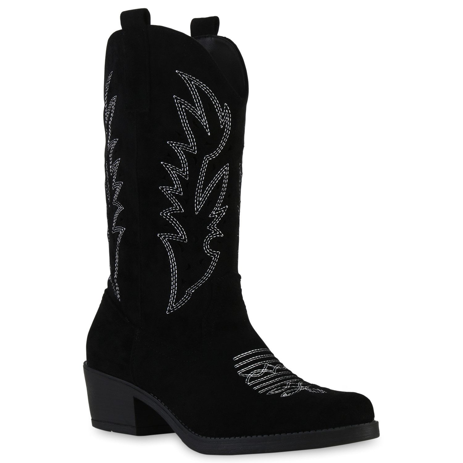 Besondere Merkmale | Damen Cowboystiefel Stiefel Veloursleder-Optik Stickereien |