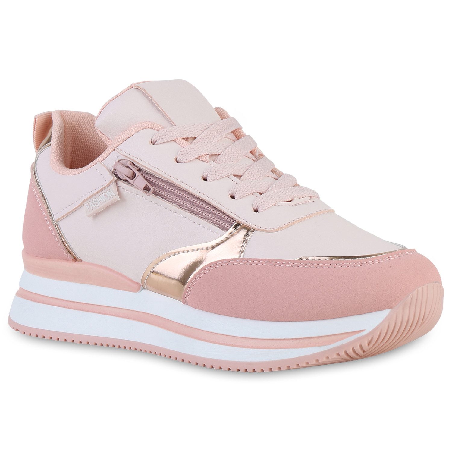 Besondere Merkmale | Damen Plateau Sneaker Keilabsatz Schnürer Metallic Zipper |
