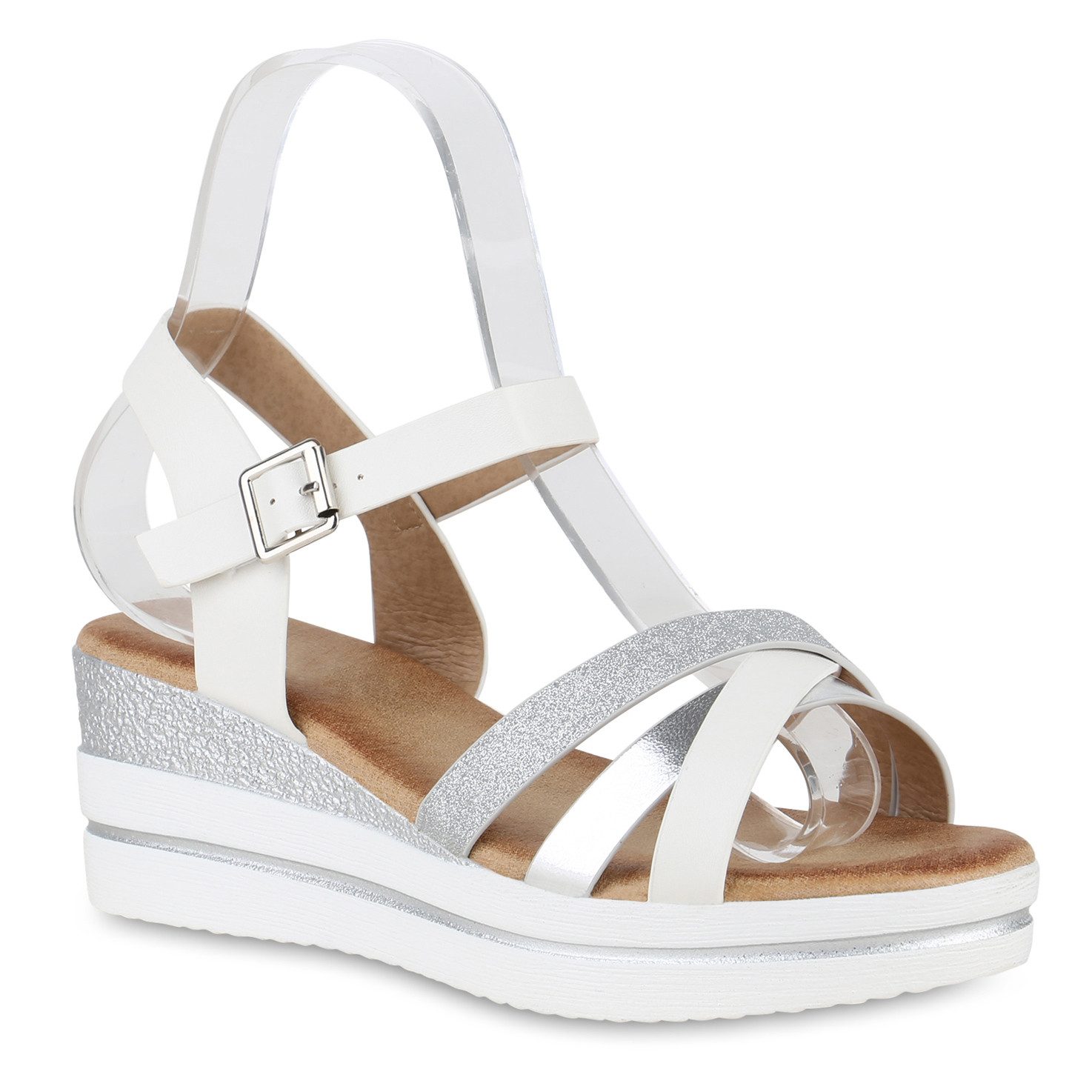 Besondere Merkmale | Damen Plateau Sandaletten Glitzer Keilabsatz Plateau- |