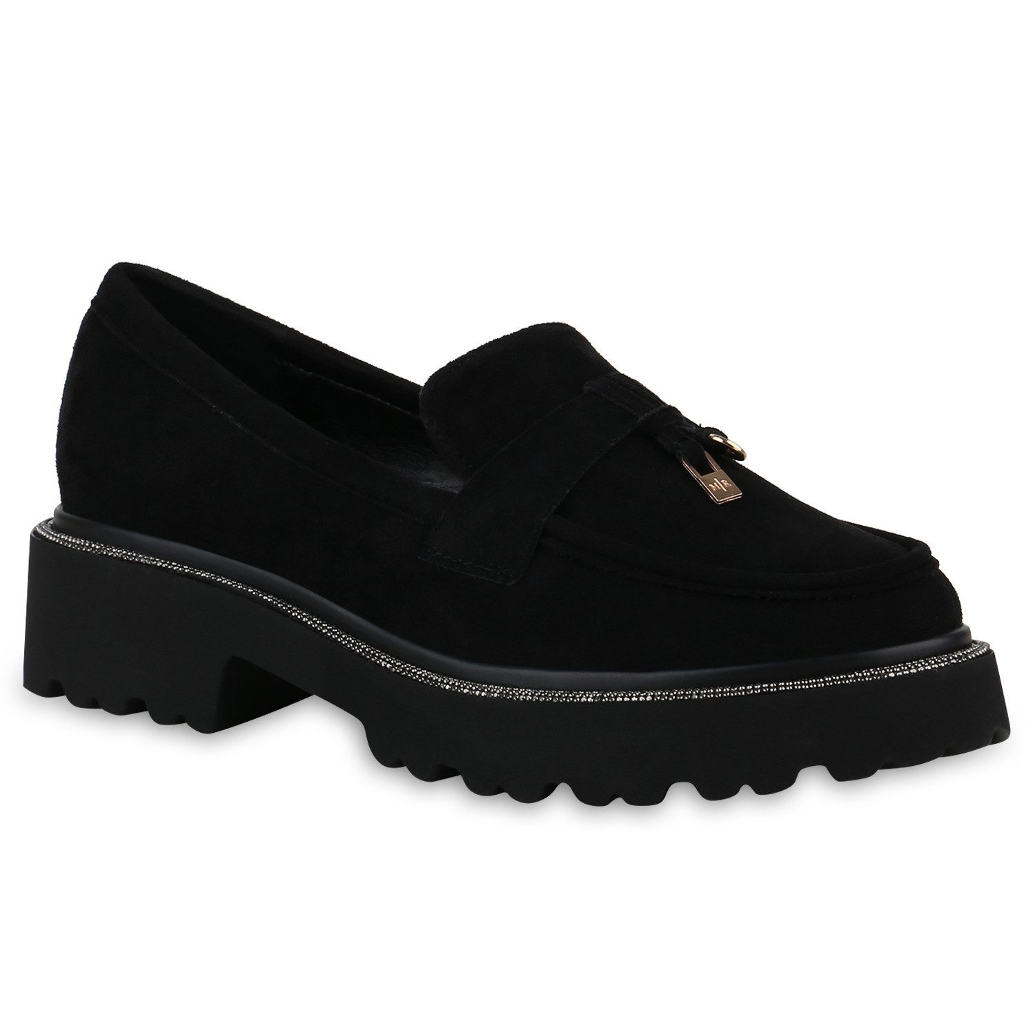 Besondere Merkmale | Damen Plateauschuhe Slippers Strass Profil-Sohle |
