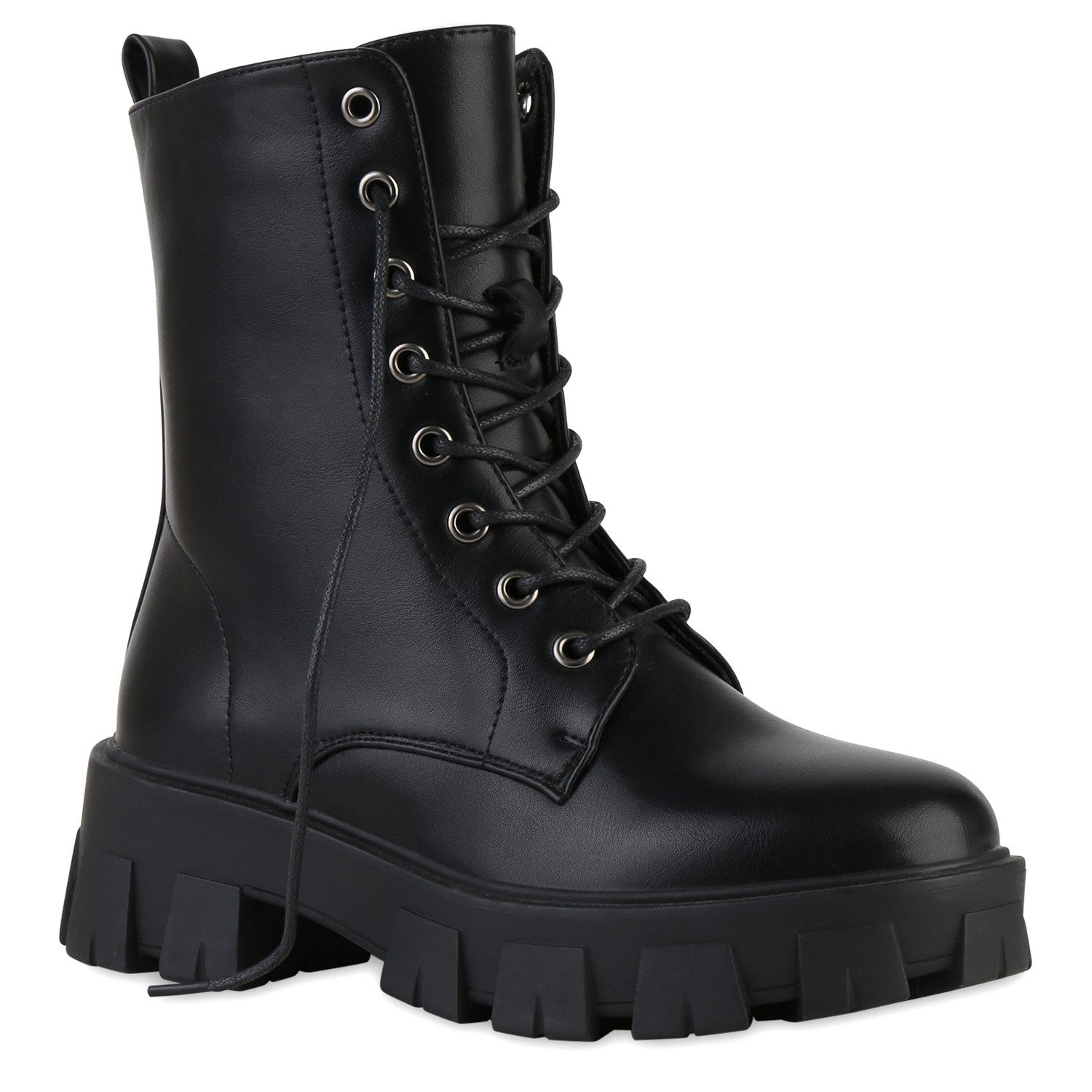 Besondere Merkmale | Damen Plateau Boots Stiefeletten Profil-Sohle Stiefel Schnür-Schuh |