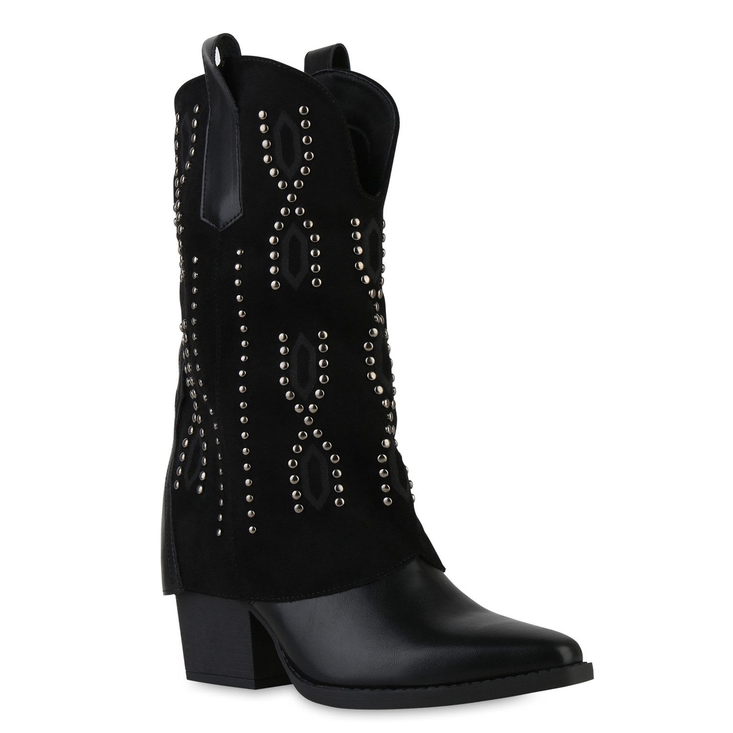Besondere Merkmale | Damen Cowboystiefel Stiefel Spitze Nieten Holzoptikabsatz |