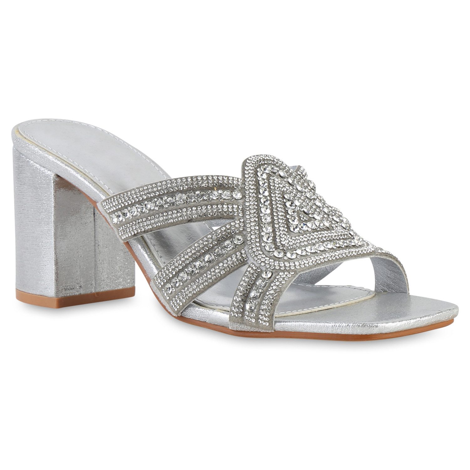 Besondere Merkmale | Damen Pantoletten Sandaletten Strass Cut-Outs Absatz- |