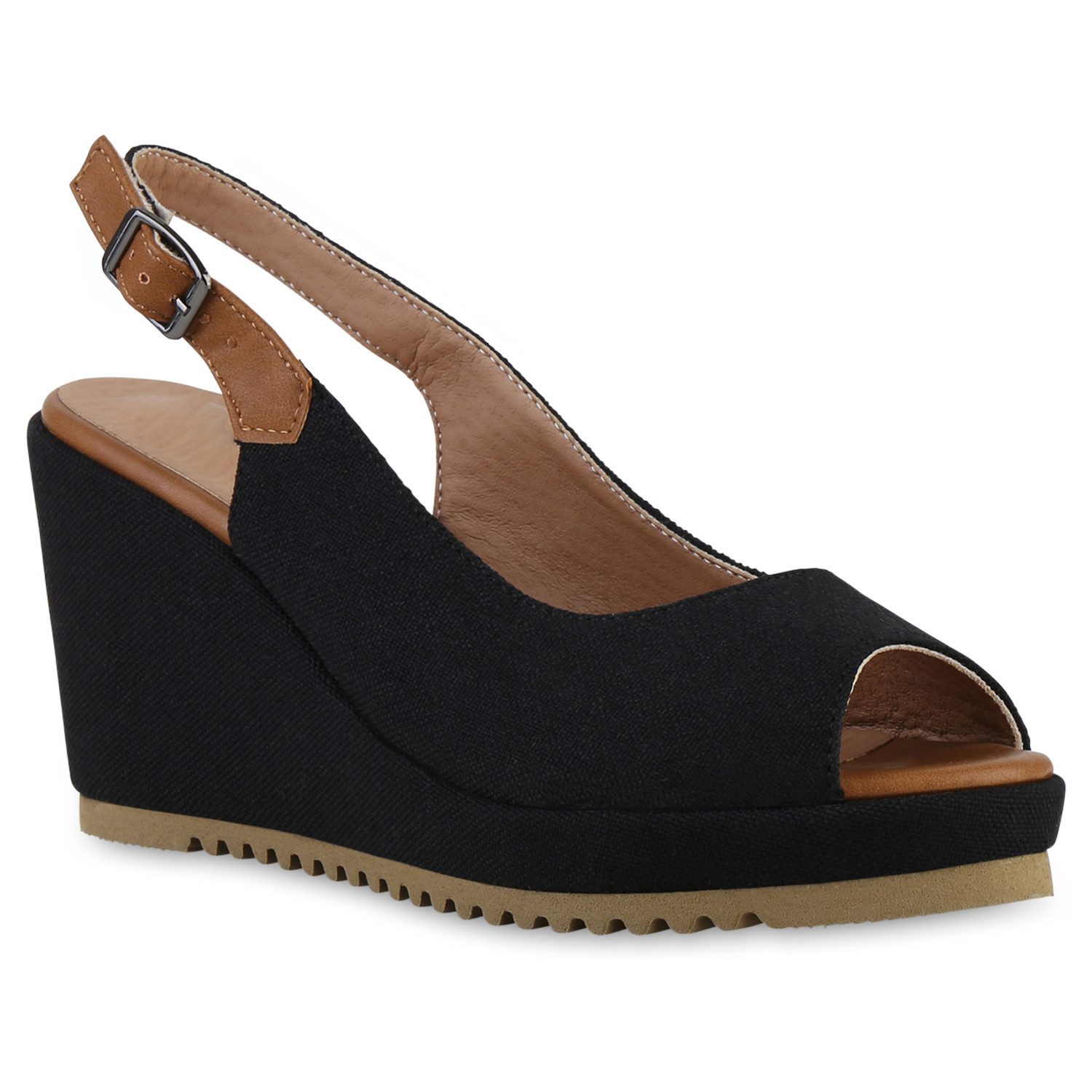 Besondere Merkmale | Damen Keilsandaletten Sandalette Plateau Vorne Profil-Sohle |
