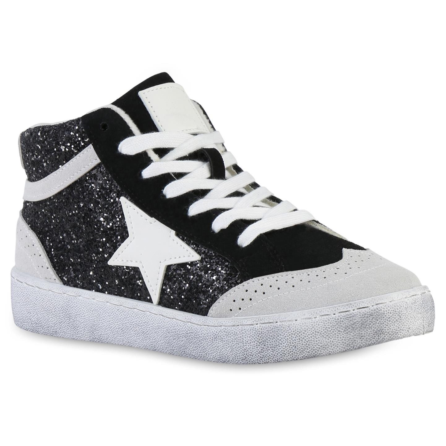 Besondere Merkmale | Damen Sneaker High Schnürer Glitzer Freizeit Schnür- |