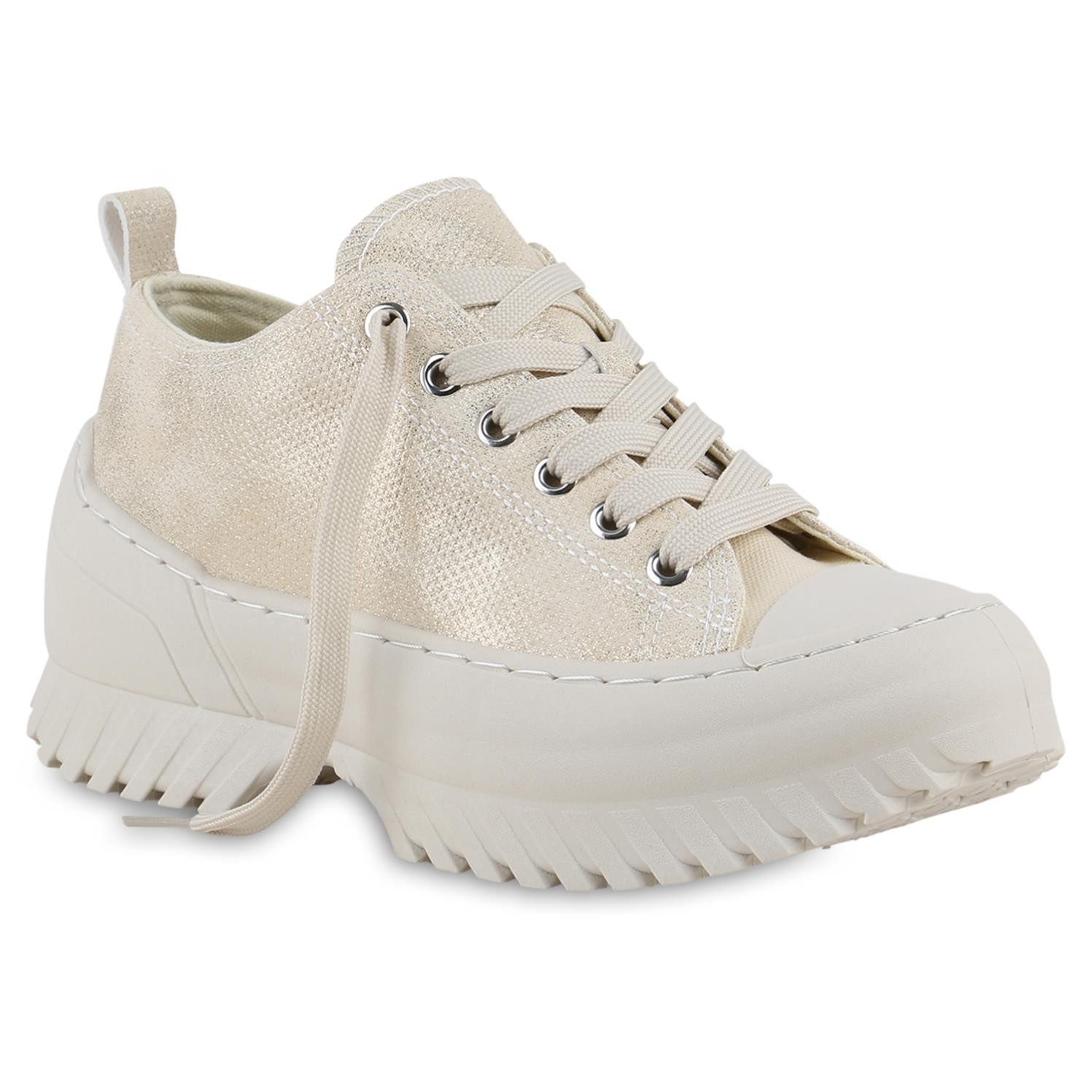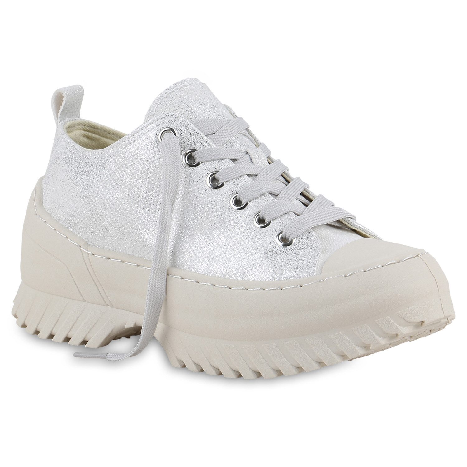 Besondere Merkmale | Damen Plateau Sneaker Schnürer Profil-Sohle Freizeit |