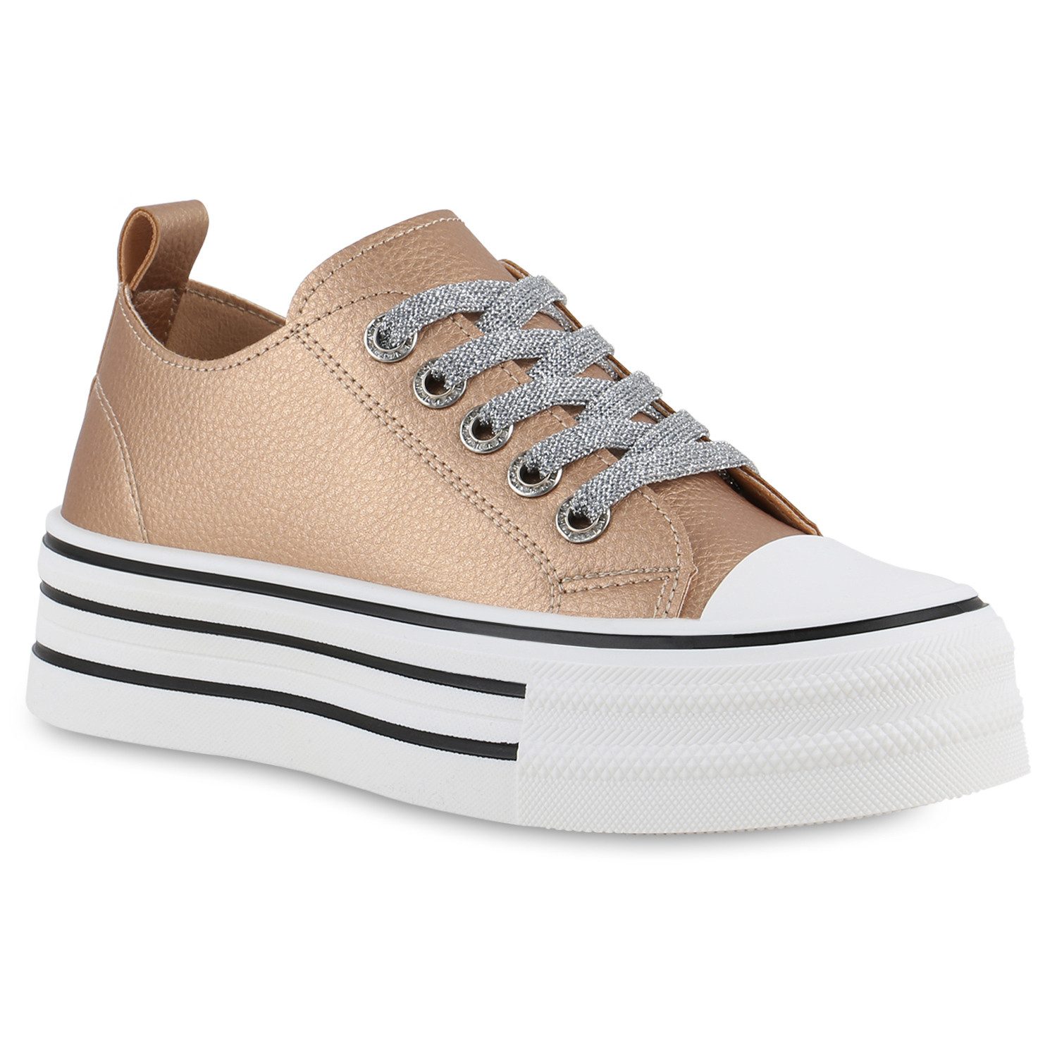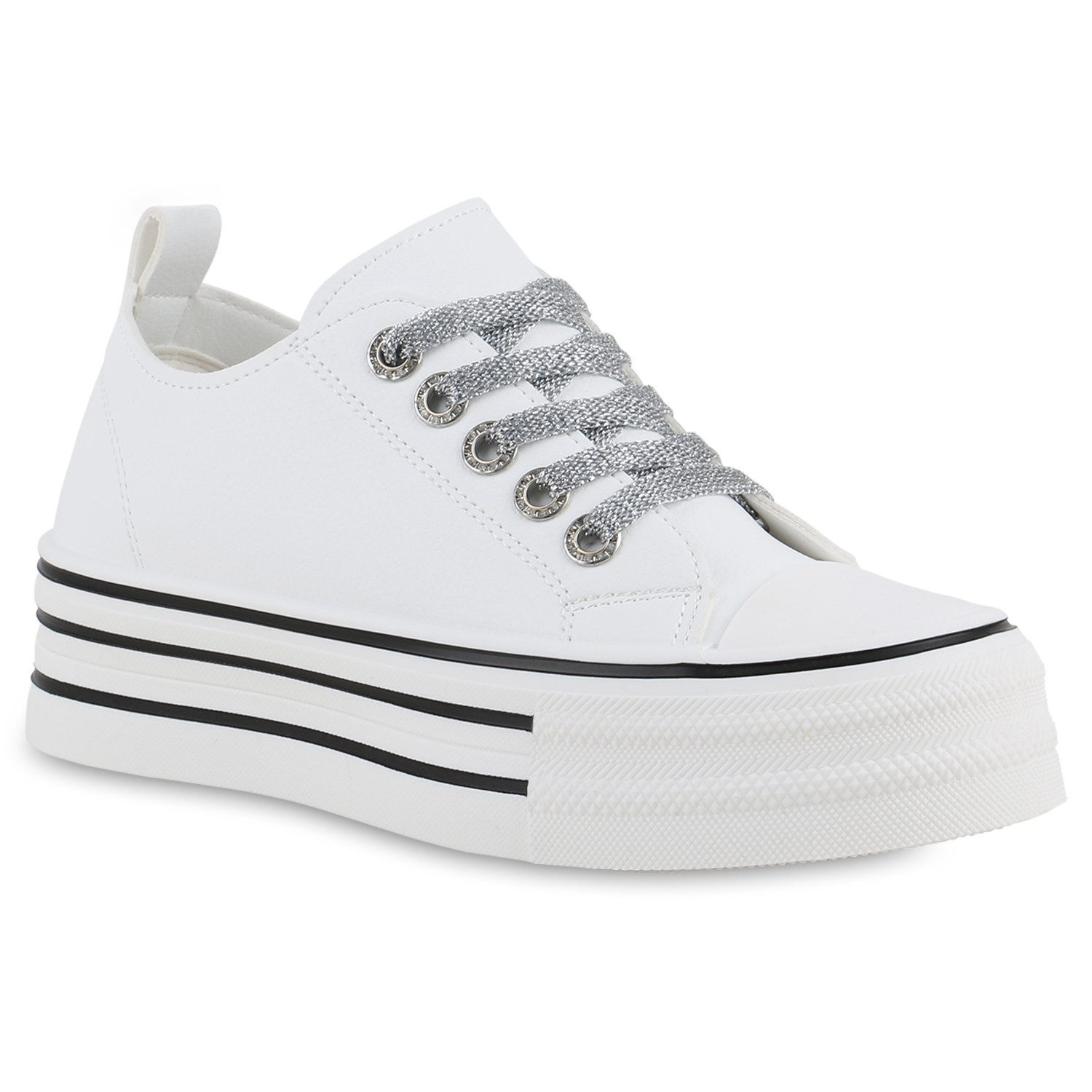 Besondere Merkmale | Damen Plateau Sneaker Schnürer Leder-Optik Basic Freizeit |