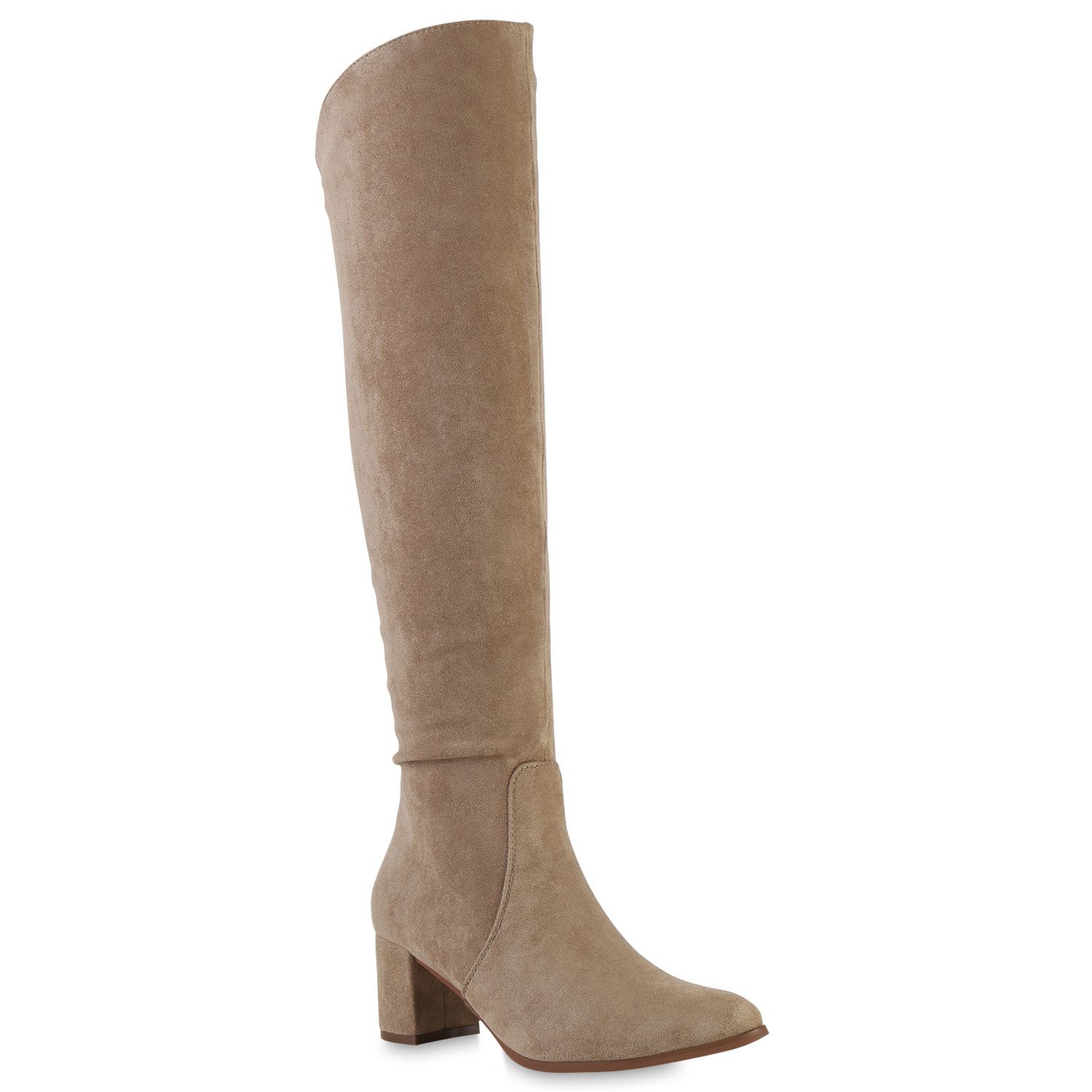 Besondere Merkmale | Damen Overknees Stiefel Basic Veloursleder-Optik |