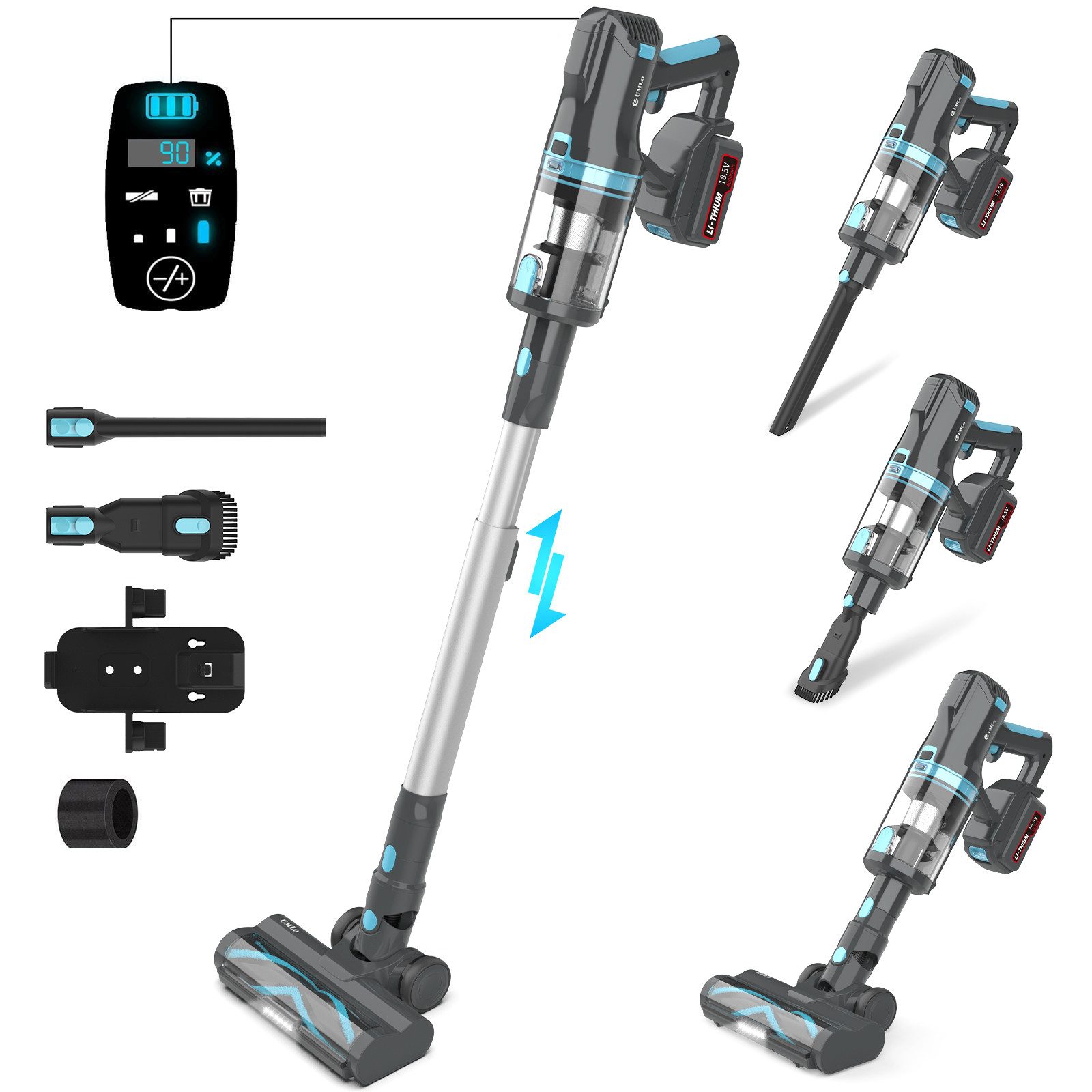 Vielseitiges 2-in-1-Design: Lässt sich leicht vom Stabstaubsauger in ein Handgerät verwandeln und ermöglicht mit den mitgelieferten Aufsätzen die bequeme Reinigung von Böden, Möbeln, Treppen und Fahrzeuginnenräumen.