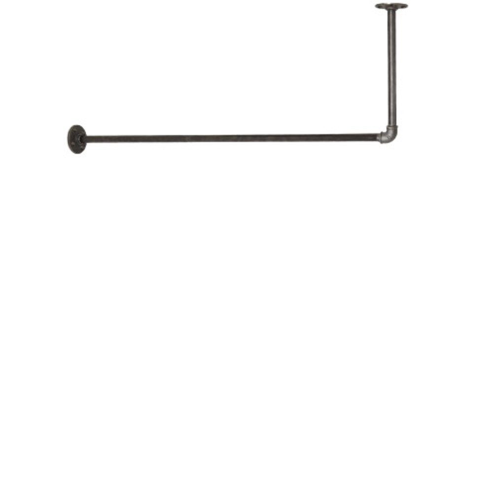 INDUSTRIAL LOOK Stilvolle Industrial Garderobenstange zur Deckenmontage und Wandmontage. Diese Kleiderstange ist in L-Form und wird über Eck an Wand und Decke montiert. Sie ist vielseitig nutzbar, z.B. als Industrial Garderobe oder als Kleiderstange in Ankleide und Schlafzimmer. Unterhalb verbleibt Platz, z.B. für Kommode oder Schuhe. Gefertigt aus Wasserrohr in schwarz anthrazit. Liebevoll handgefertigt in Deutschland.