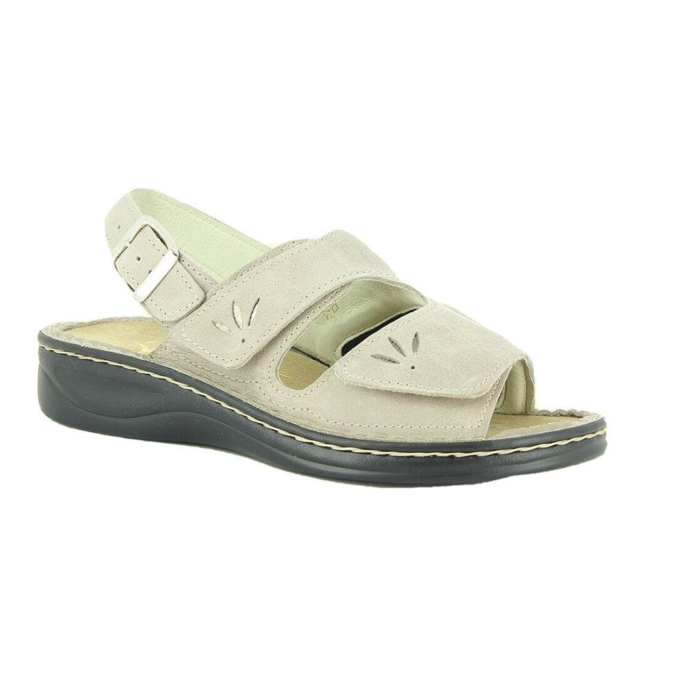 Die Damen Sandale "Yvonne" von Varomed ist die perfekte Kombination aus Stil und Komfort. In einem eleganten Grau gehalten, verleiht sie Ihrem Look eine zeitlose Note. Die Sandale ist in der Размер 39 erhältlich und besteht aus hochwertigem Leder, was nicht nur für ein ansprechendes Aussehen sorgt, sondern auch für einen angenehmen Tragekomfort. Der praktische Klettverschluss ermöglicht eine mühelose Anpassung und einen sicheren Halt. Mit der Sandale "Yvonne" sind Sie bereit, die warmen Tage in Stil und Bequemlichkeit zu genießen.